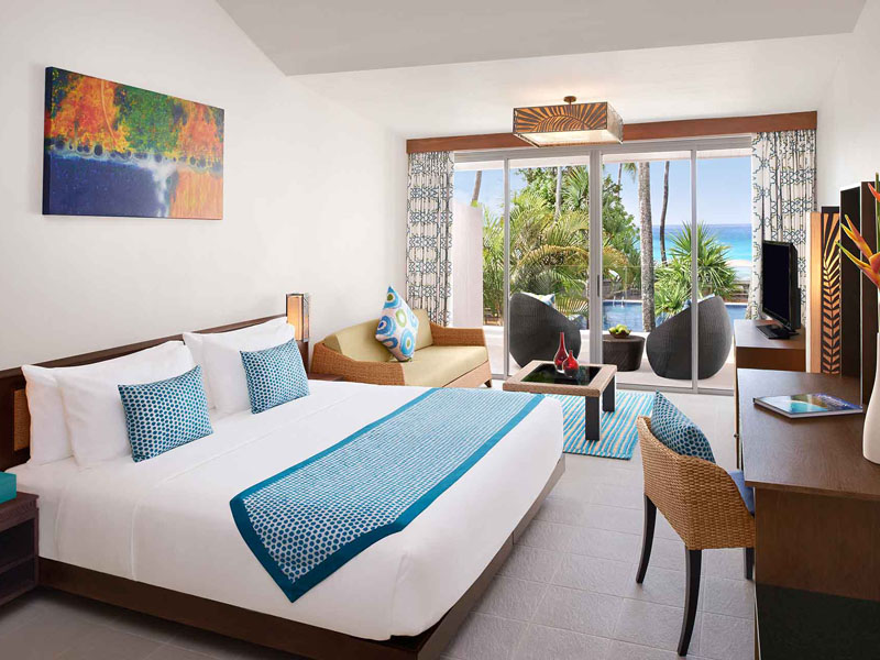 Avani Ocean View Room: 32-36 м2. Расположен на 1 или 2 этаже, состоит из спальни с двуспальной кроватью или двумя кроватями twin, ванной комнаты с ванной и душем, балкона или террасы с видом на океан и сад или на океан и бассейн. Размещение – 2 взрослых + 1 ребенок.