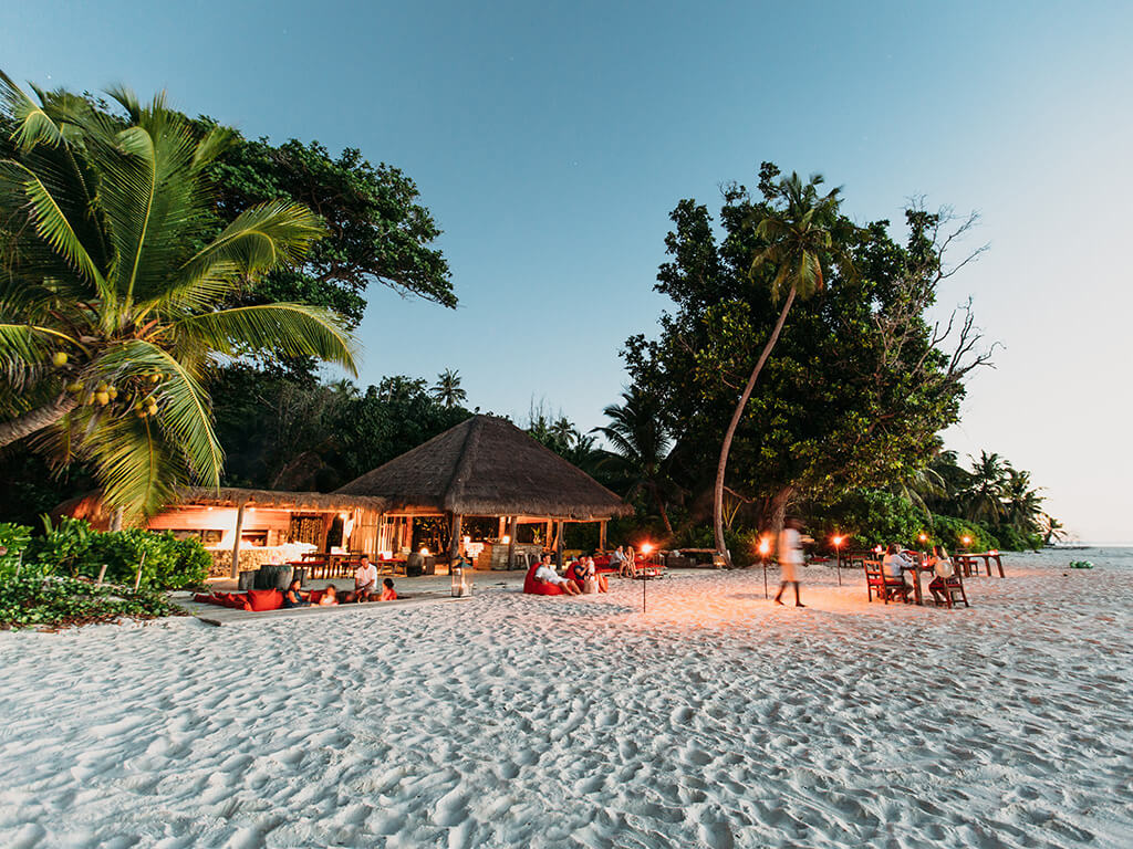 Гости смогут отведать кулинарные изыски от местных шефов в просторном обеденном зале Piazza Bar & Lounge с потрясающим видом на океан, на пляже в романтической обстановке, у бассейна или в собственной вилле. Фиксированного меню в отеле нет, шеф-повара готовят все по предварительному согласованию с гостями, исходя из их вкусов и предпочтений. В баре Sunset Beach можно заказать лёгкие закуски, провести время за фирменным коктейлем, наслаждаясь тропическим закатом.