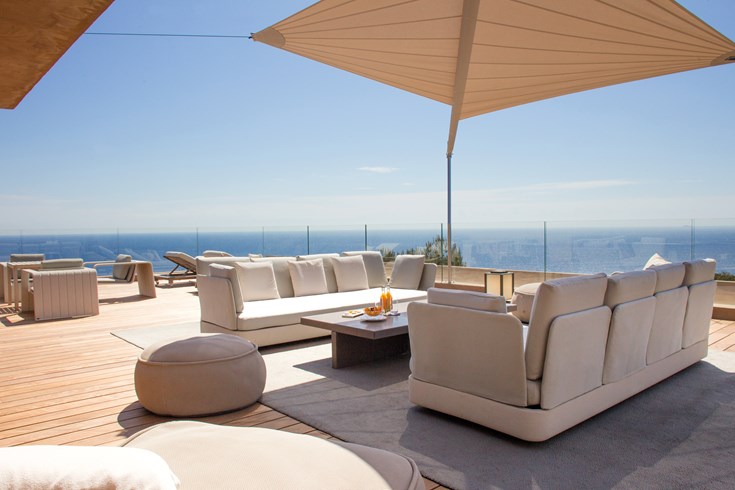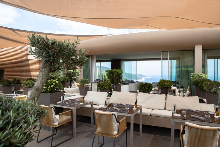 Taillat Suite: 90 м2 + терраса 170 м2. Номер с панорамными, от пола до потолка окнами, отделанный натуральным камнем и светлым деревом, состоит из спальни с кроватью king-size, отдельной гостиной, ванной комнаты с ванной и душем, огромной меблированной угловой террасы с видом на море. Максимальное размещение - 3 человека.