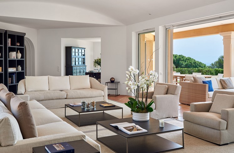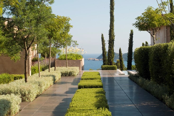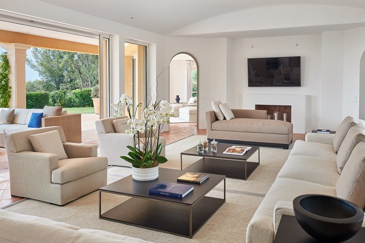 5 Bedroom Villa № 19: 350 м2. Расположена в восточной части комплекса, имеет вид на море, включает: пять спален с собственными ванными комнатами и отдельными туалетными комнатами, гостевую туалетную комнату, гостиную со столовой и полностью оборудованной кухней, патио с открытым бассейном, гараж на 2 места, открытую парковку на 4 места, частный сад и окружающую виллу территорию в 3011 м2. Во всех спальнях на вилле имеются сейфы. Максимальное размещение - 10 человек.