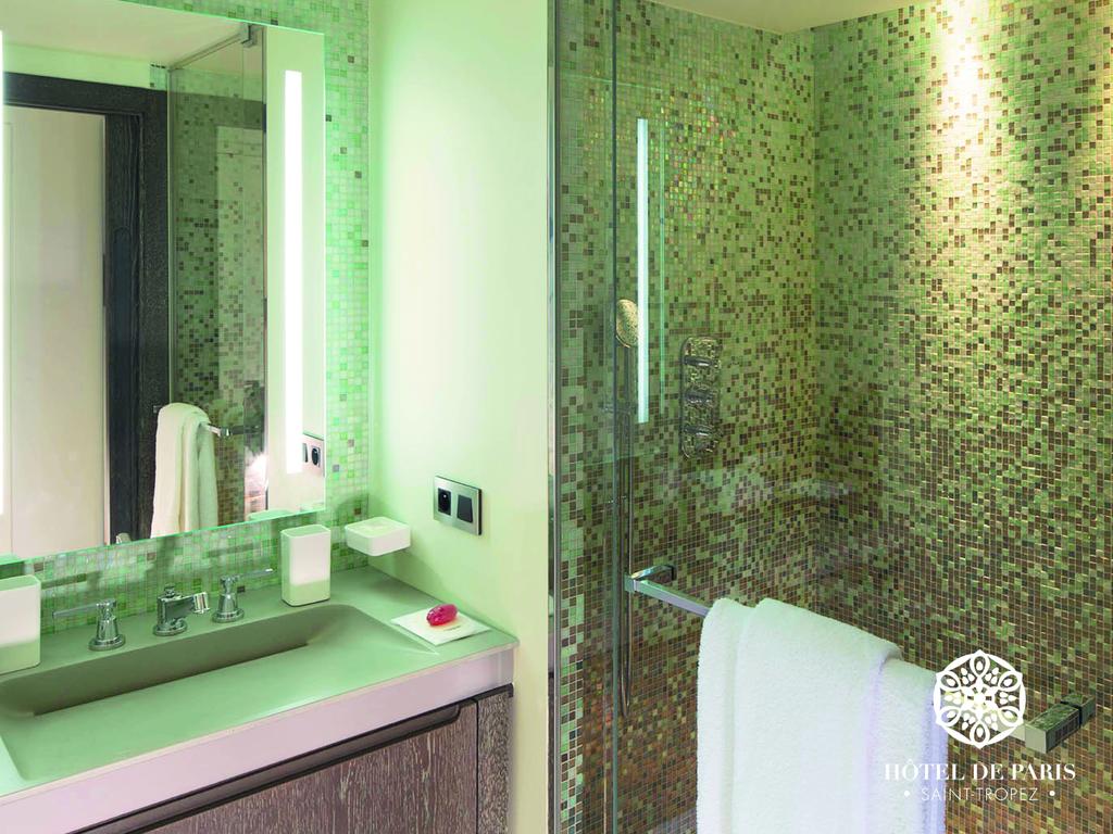Classic room (25 кв м), дизайнерский номер с двумя односпальными или двуспальными кроватями. Окна выходят на узкие мощеные улочки, а некоторые на новый порт и поле для гольфа Сен-Тропе. В ванных комнатах душевые кабины в итальянском стиле украшены мозаикой.