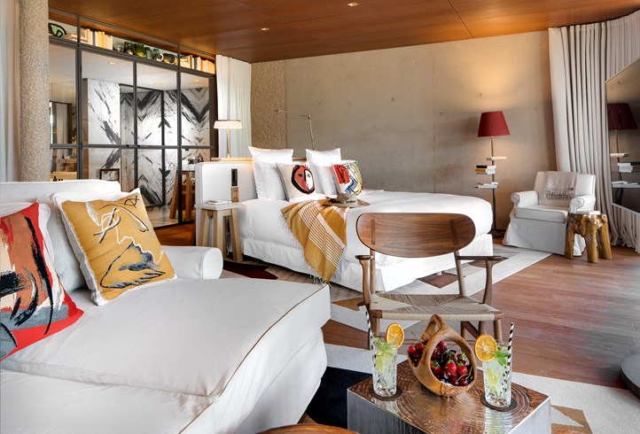 В отеле всего 44 номера различных категорий, включая 38 Guest Rooms и 6 Suites. Стильный оригинальный дизайн номеров создан знаменитым Филиппом Старком, а с балконов и террас номеров открываются потрясающие виды на пышные сады, лазурное море и холмы Лардье .