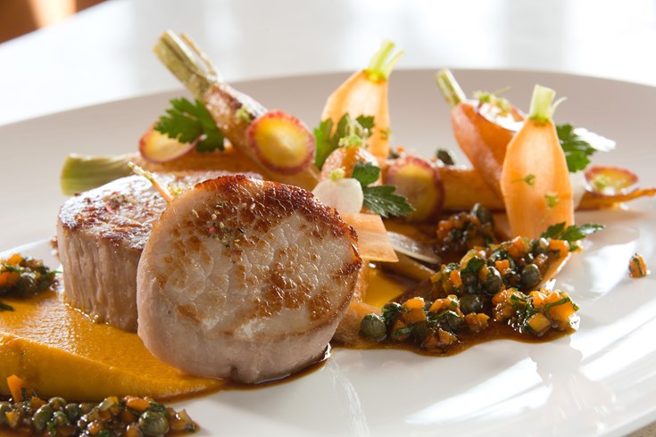 Уютный ресторан Vista, с террасы которого открывается захватывающий вид на море, предлагает блюда прованской и средиземноморской кухни.