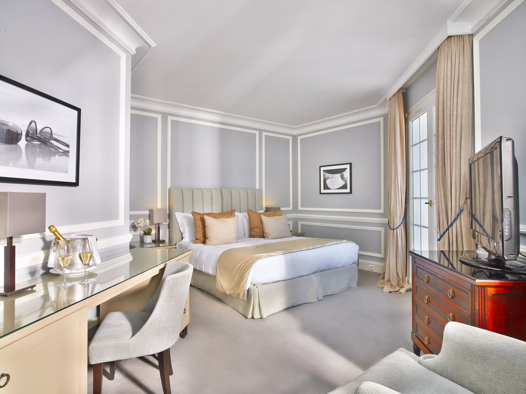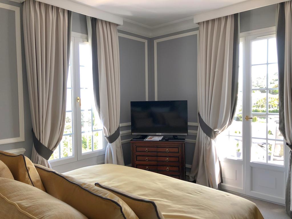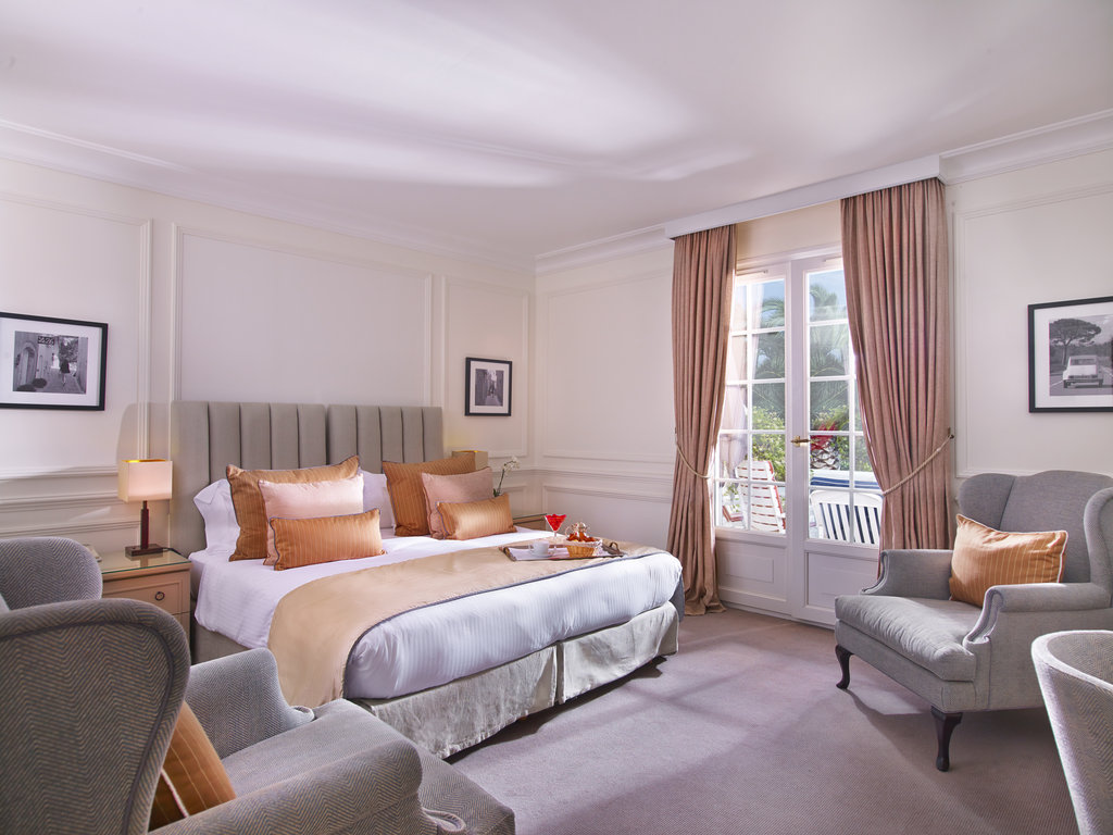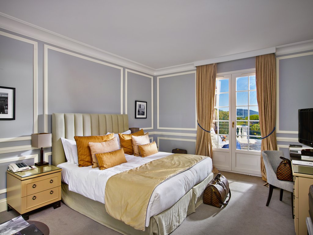 Prestige Deluxe Sea View Room: 30 м2+ терраса 30 м2. Состоит из спальни с кроватью queen-size и небольшой зоной отдыха, ванной комнаты с ванной или душем, просторной террасы с шезлонгами с панорамным видом на залив Сен-Тропе.