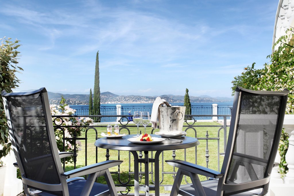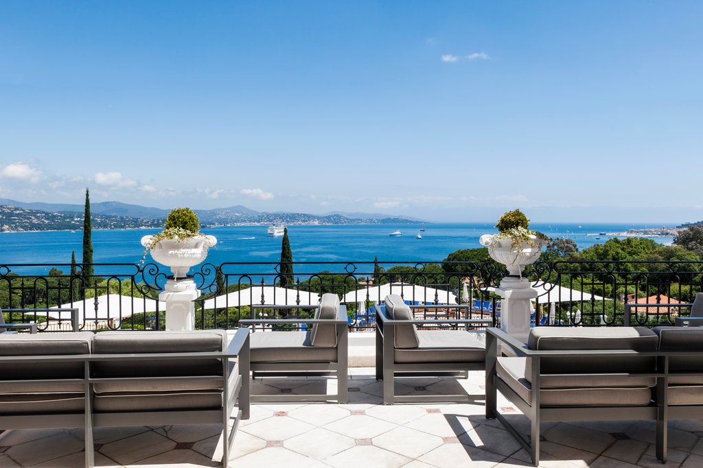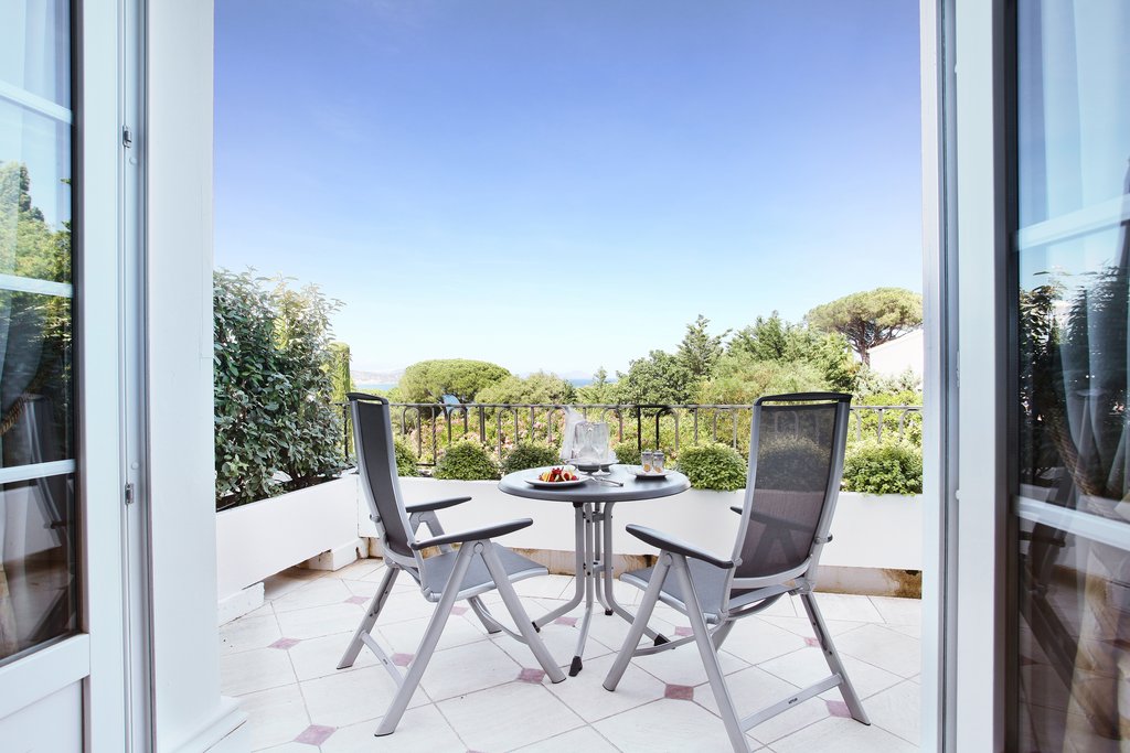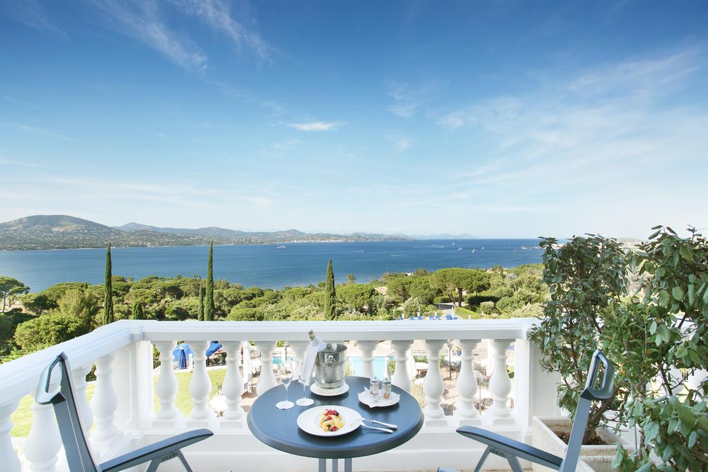 Prestige Sea View Room: 25 м2+ терраса 30 м2. Состоит из спальни с кроватью queen-size и небольшой зоной отдыха, ванной комнаты с ванной или душем, просторной террасы с шезлонгами и видом на залив и Сен-Тропе.
