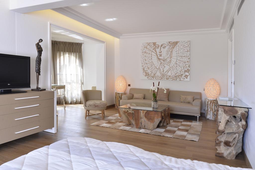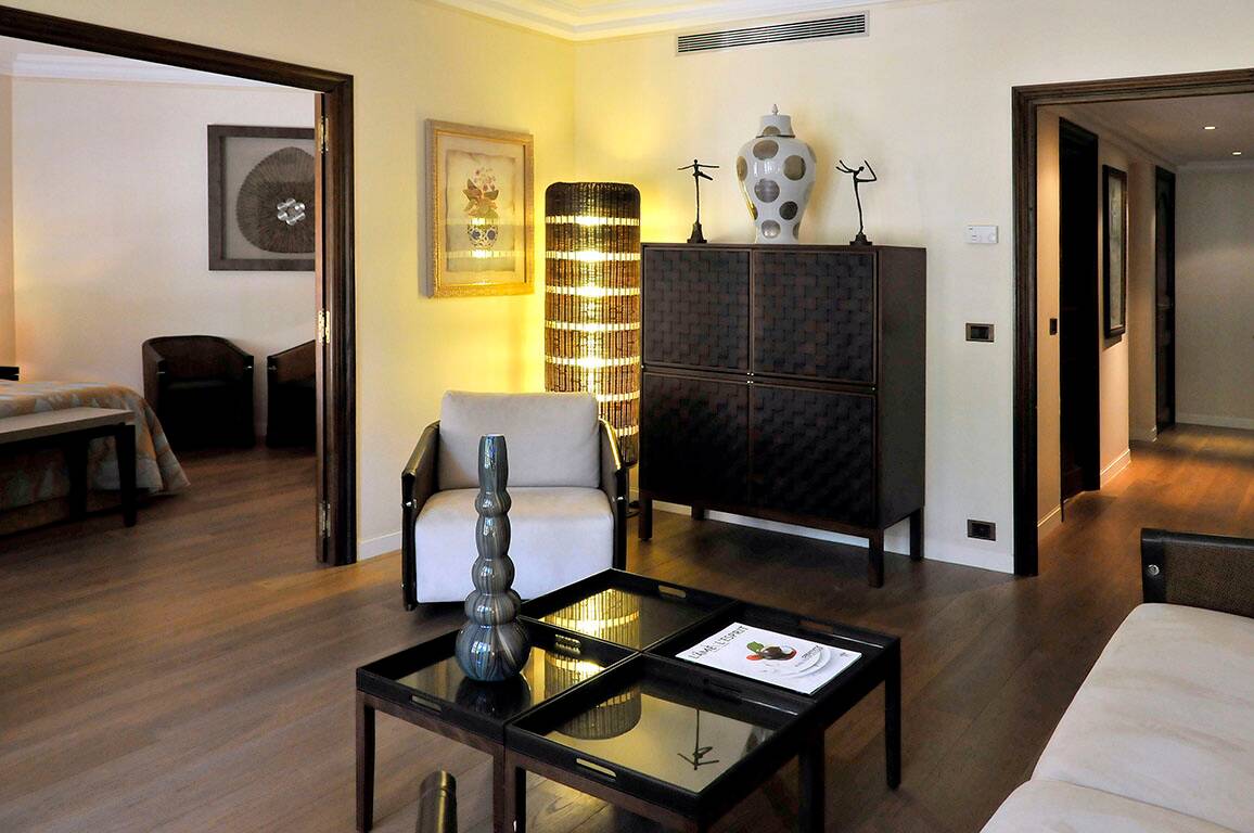 Apartment (100 кв м), с гостиной зоной, две спальни, в каждой по ванной комнате. Апартаменты украшены изысками в современном стиле, сочетают в себе подлинность и престиж и имеют террасу с видом на сад.