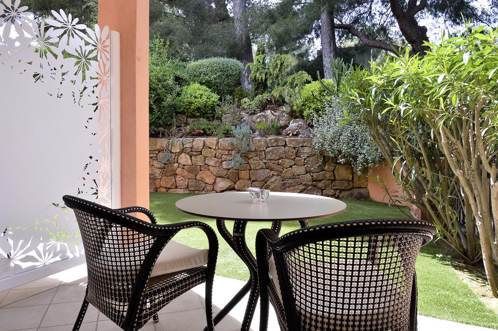 Deluxe rooms (32 кв м), оформлены в современном и изысканном стиле и располагают террасой или балконом с видом на бассейн или сад.