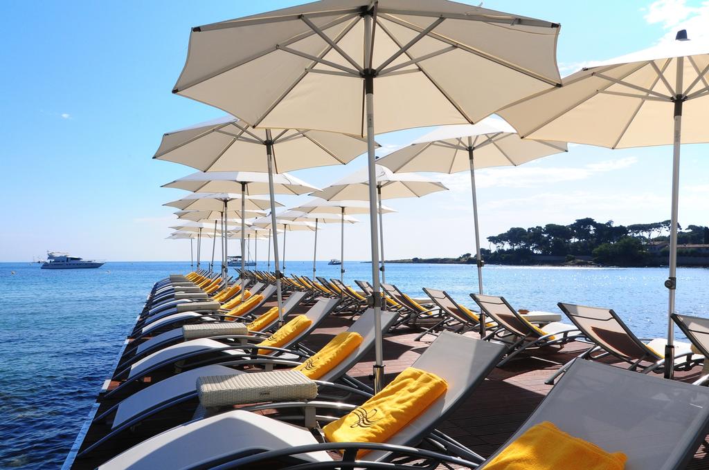 Отель Imperial Garoupe расположен рядом с частным песчаным пляжем Le Pavillon в бухте Ля Гаруп (La Garoupe), куда ведет дорожка из сада отеля. Пляж окружен тиковыми деревьями и украшен кактусовым садом и каменными горками.