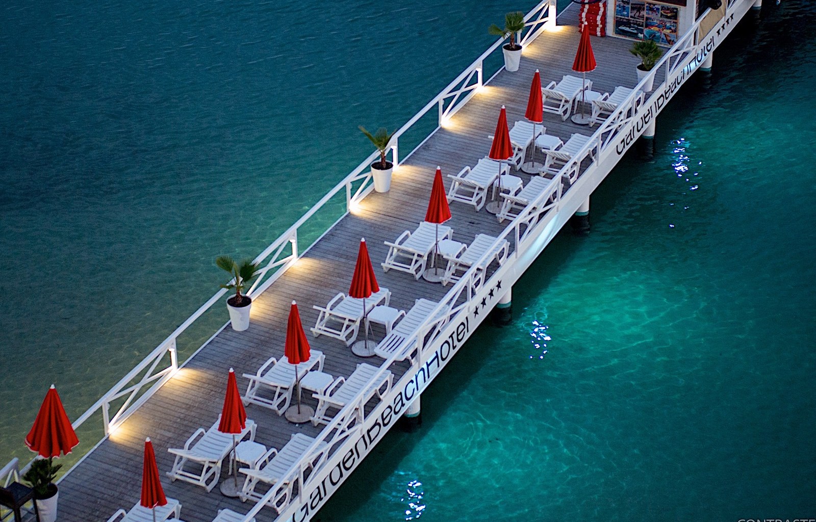 Отель Garden Beach располагает частным оборудованным песчаным пляжем, а также понтоном с лежаками, расположенными прямо перед отелем.