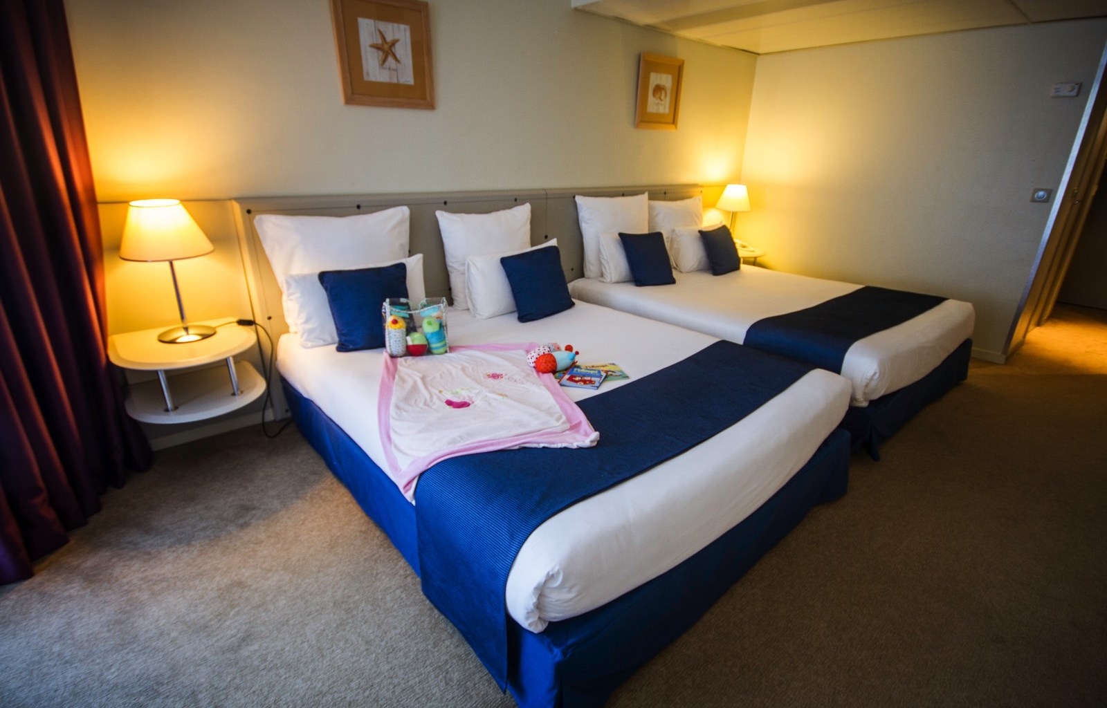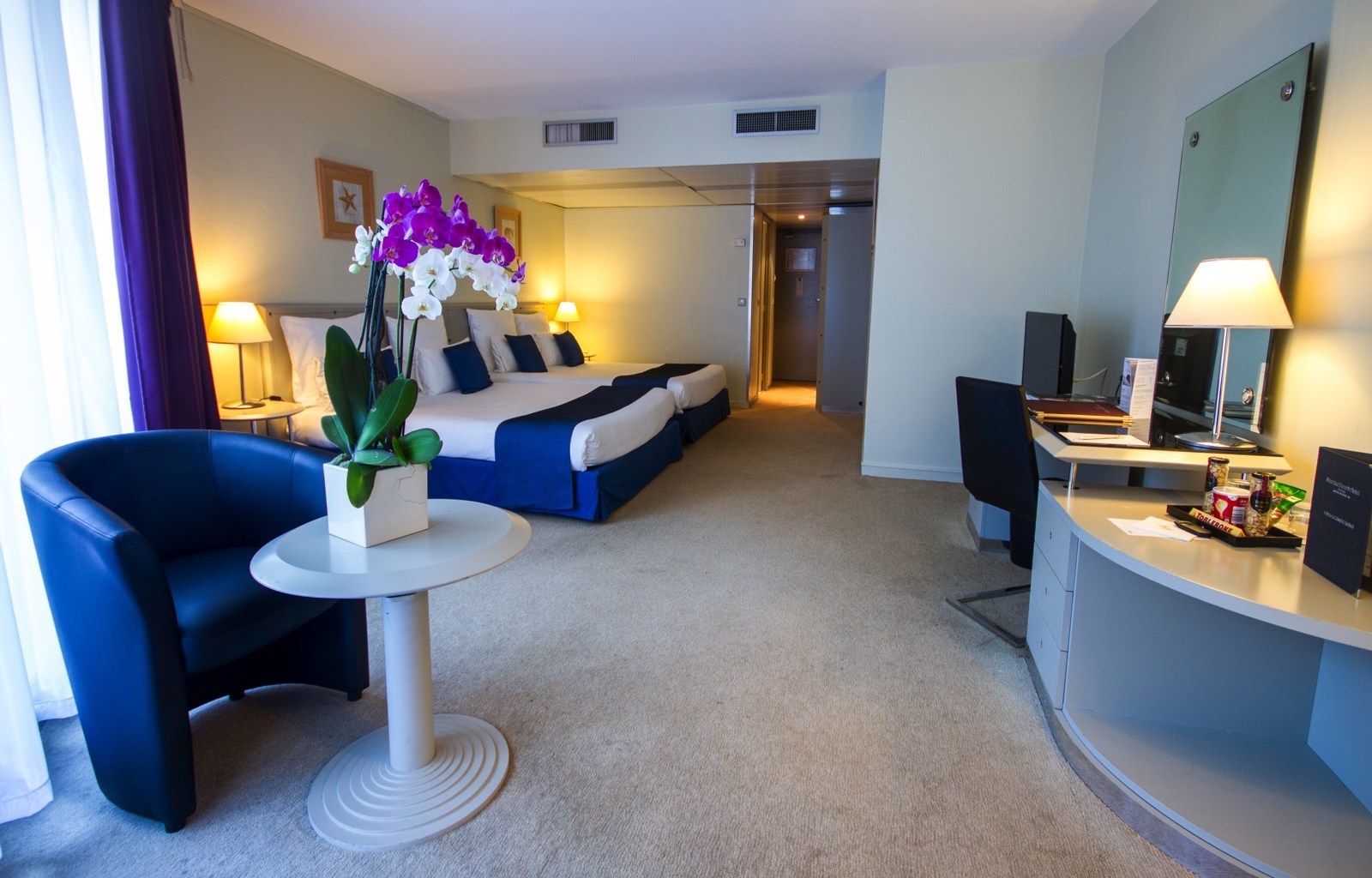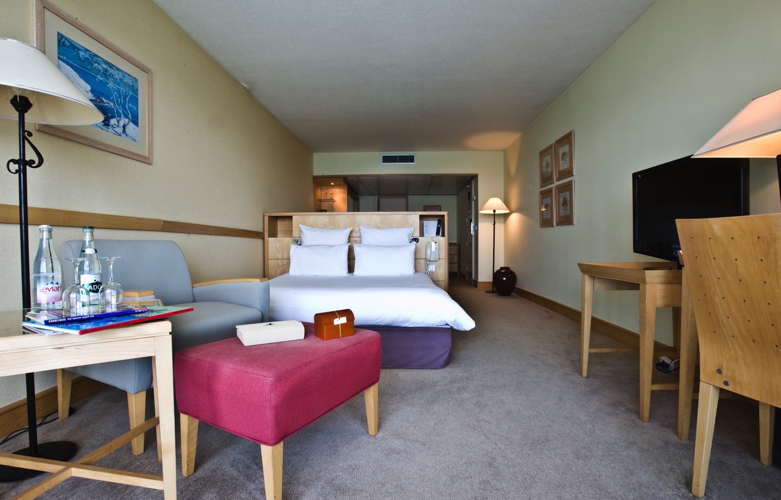 Deluxe Family Room: 30 м2. Состоит из спальни c двуспальной и односпальной кроватями, небольшой зоны отдыха, ванной комнаты. Вид на море. Максимальное размещение - 3 человека.
