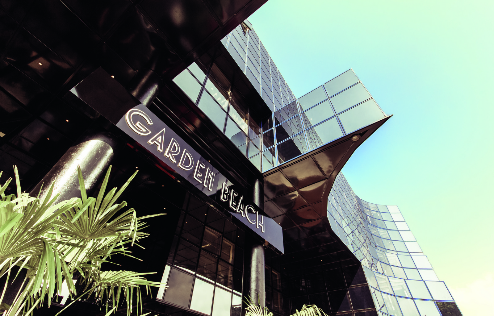 Интерьеры номеров сочетают современный комфорт, стиль модерн, изысканность и вкус, традиционно присущие французским дизайнерам. Комнаты оформлены в светлых тонах (голубых и светло-желтых), обставлены современной мебелью, украшены оригинальными модернистскими аксессуарами. Комплекс Garden Beach Hotel располагает: 2 ресторанами и баром, частным пляжем и фитнес-залом.
