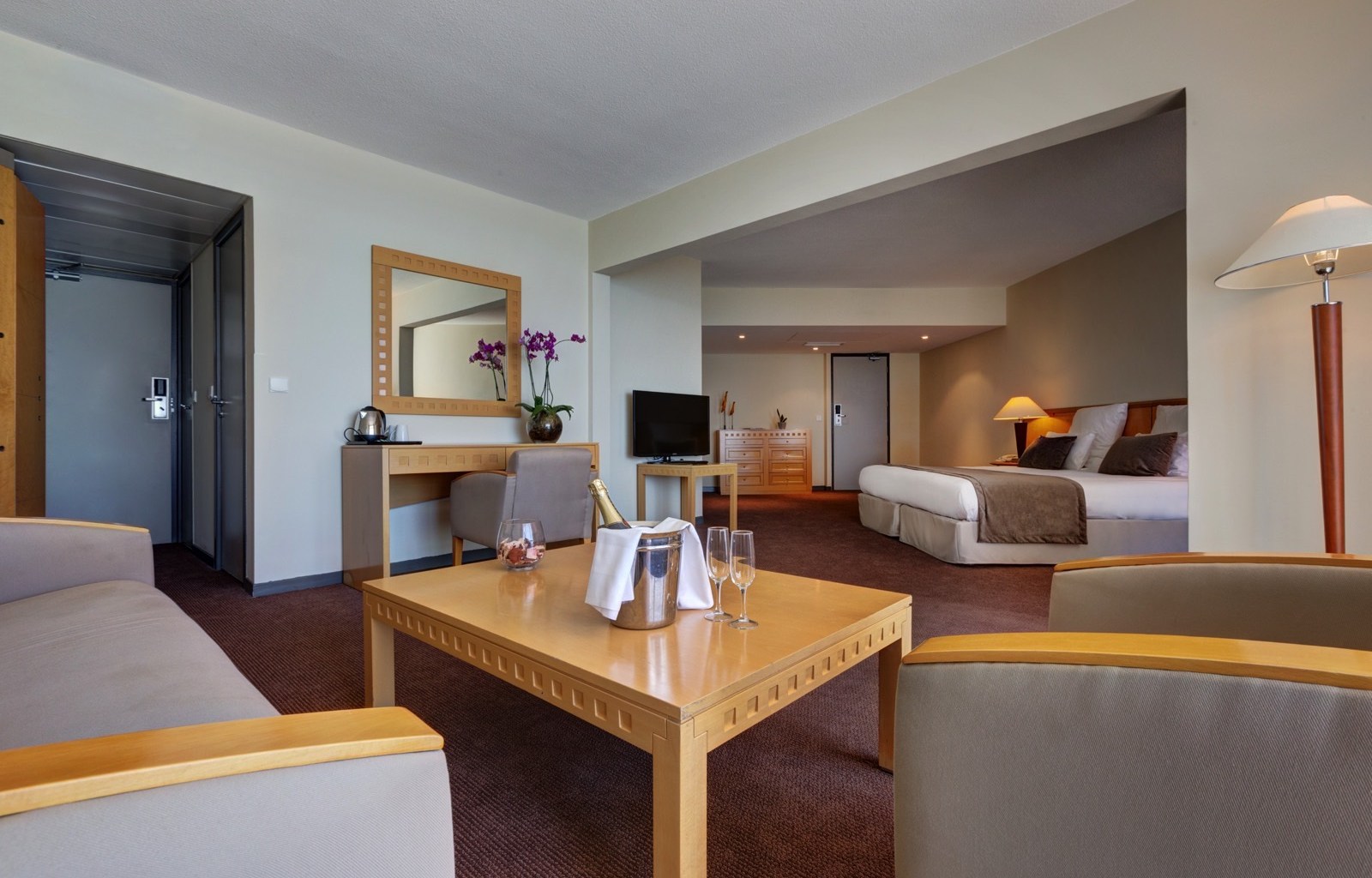 Superior Junior Suite: 50 м2. Состоит из спальни c двуспальной кроватью, гостиной зоны, ванной комнаты с ванной и душем, балкона с видом во внутренний двор. Максимальное размещение - 3 человека.