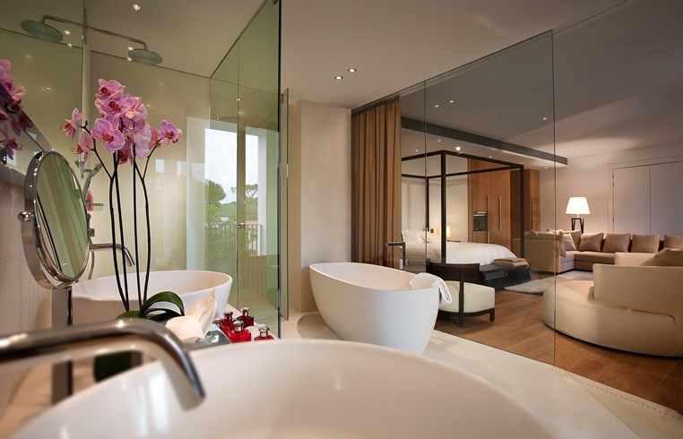 Junior Space: 45 м2. Состоит из спальни с кроватью king-size и гостиной зоной ванной комнаты с душевой кабиной, из французских окон открывается живописный вид на Апуанские Альпы, сад или бассейн.