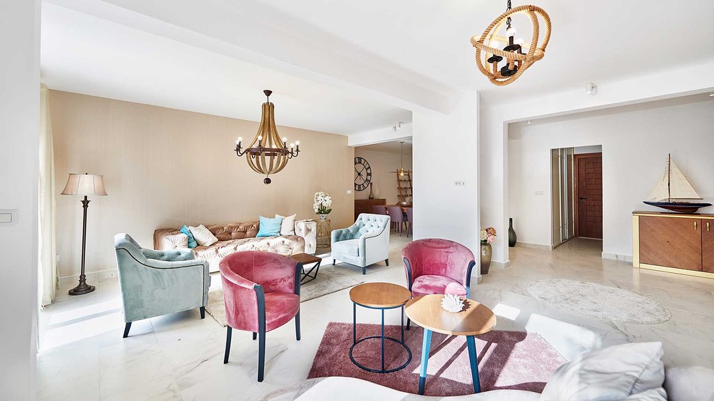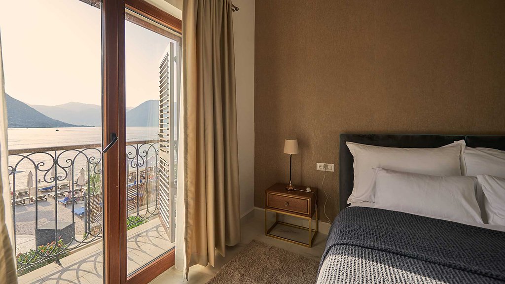 Three Bedroom Beachfront Villa: 198-209 м2. Роскошная вилла в венецианском стиле состоит из трех спален с террасами, гостиной, столовой, кухни, трех ванных комнат, внутреннего двора с террасой, зоной отдыха и видом на Которский залив. Виллы расположены у моря. Максимальное размещение – 6 взрослых + 3 ребенка.