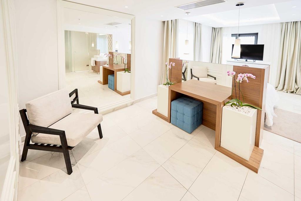 Honeymoon Suite : 58-61 м2 + терраса 7 м2. Состоит из спальни, гостиной с диваном, ванной комнаты, террасы с видом на море. Максимальное размещение – 3 взрослых + 1 ребенок.
