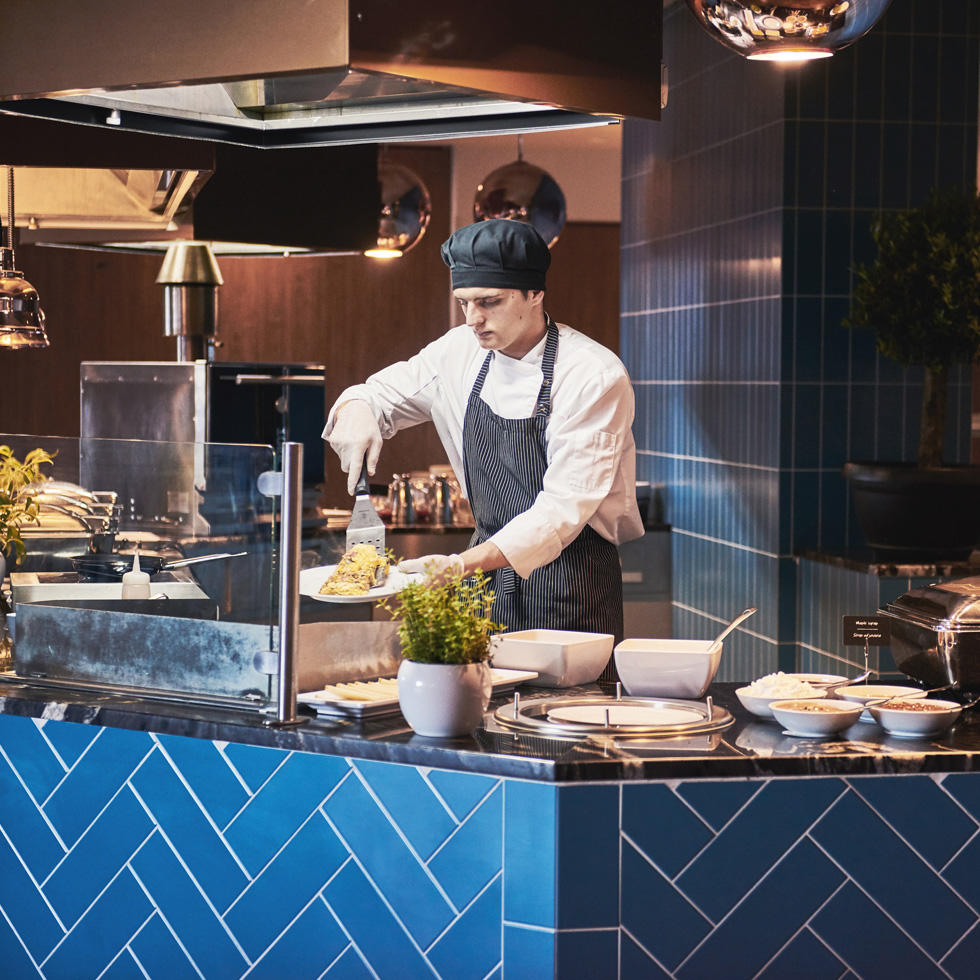 В Mara's Show Kitchen-Restaurant готовят блюда для завтрака или ужина прямо на глазах гостей.