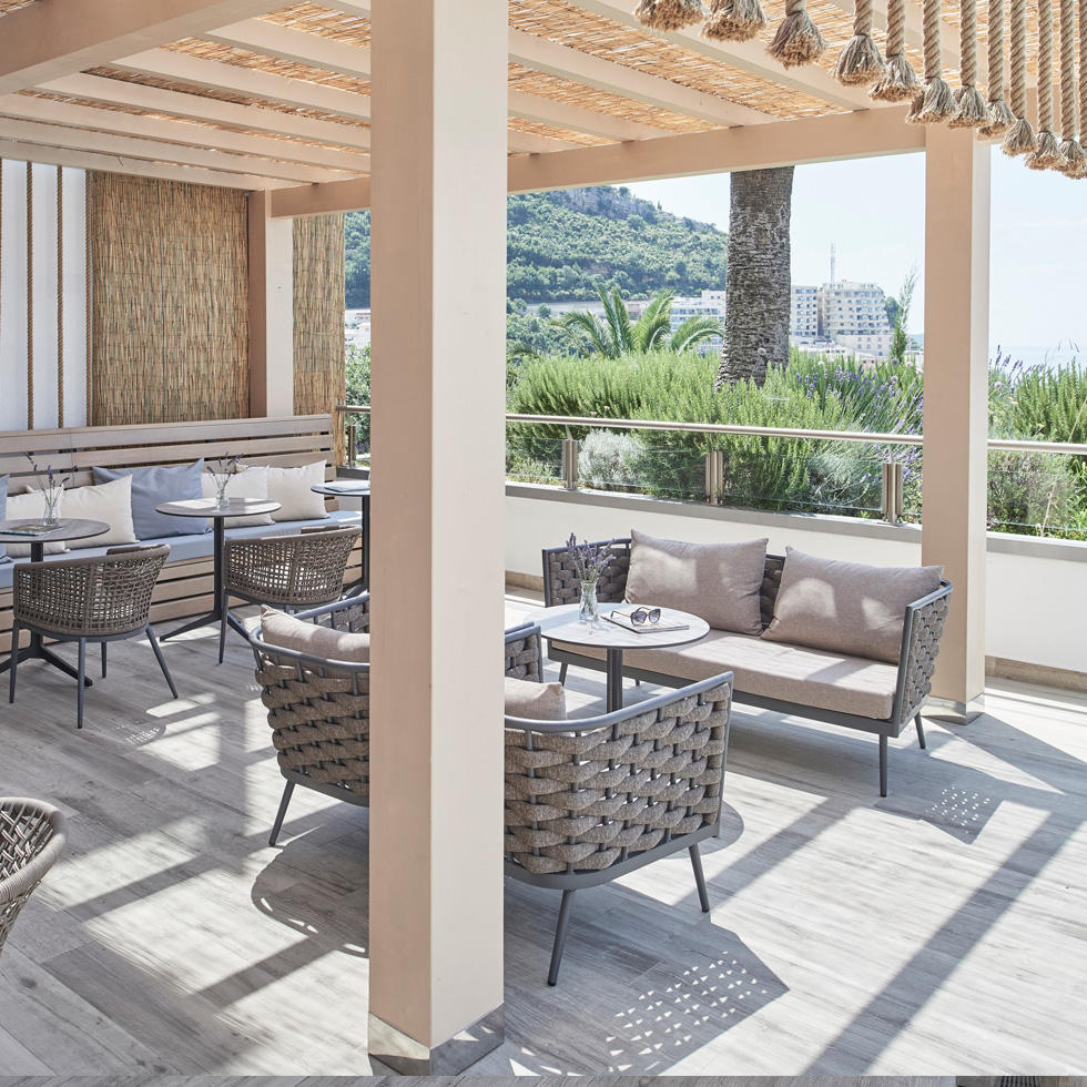 Отель расположился на небольшом холме, утопающем в пышной зелени, в курортном городке Бечичи, в 5 км от города Будва и в 25 км от аэропорта Тивата.
