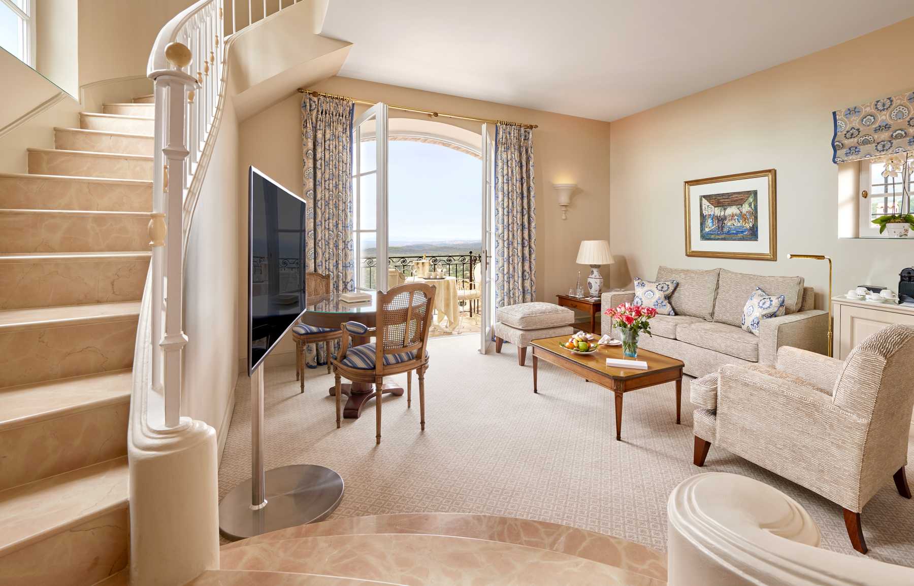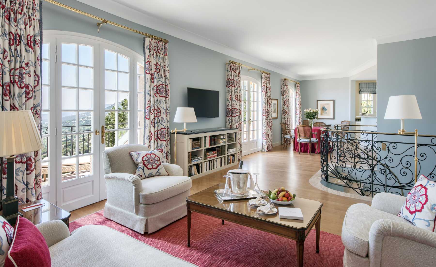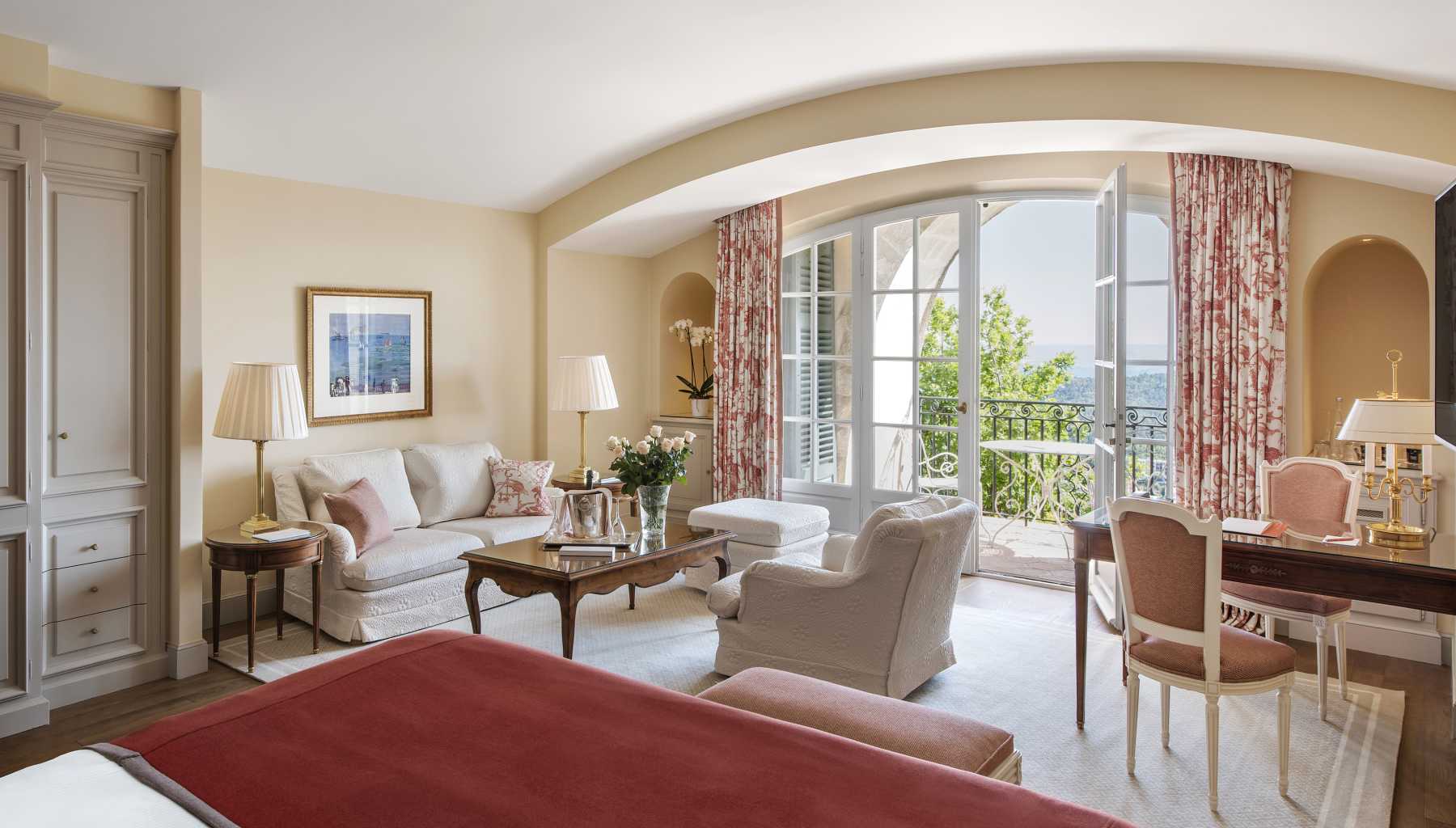 Все номера имеют террасы или балконы. Из номеров открываются захватывающие виды на море и чарующие пейзажи Прованса. В каждом номере есть ванная комната, отделанная розовым мрамором, с ванной и душевой. Комнаты оформлены в светлых тонах, обставлены старинной мебелью эпохи Людовика XV и Людовика XVI, украшены изысканными аксессуарами и подлинными произведениями искусства. В оформлении интерьеров использованы дорогие ткани лучших марок.