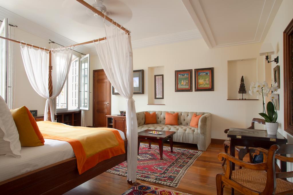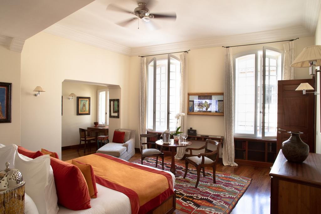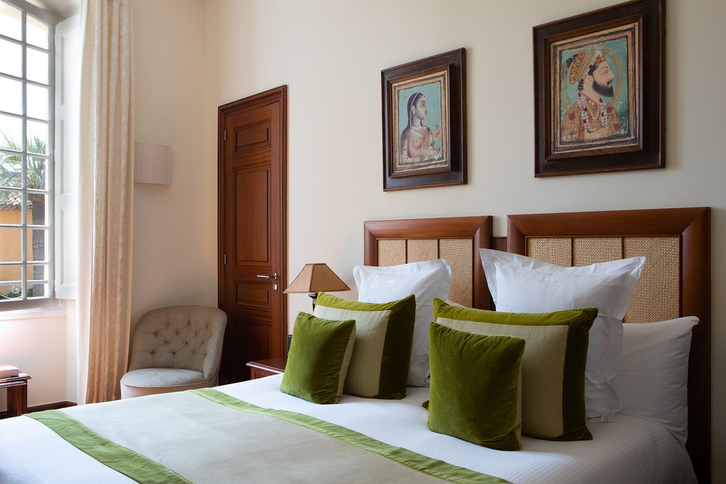 В отеле 12 комфортабельных номеров различных категорий. Роскошные интерьеры номеров, каждый из которых имеет своё название, связанное с индийской историей и культурой, воплощают романтическую атмосферу, пронизанную уникальной экзотикой Востока: отделка и мебель из редких пород дерева, изящная резьба, восточные ковры ручной работы, антикварные аксессуары и украшения, прекрасные скульптуры и поразительные произведения искусства.