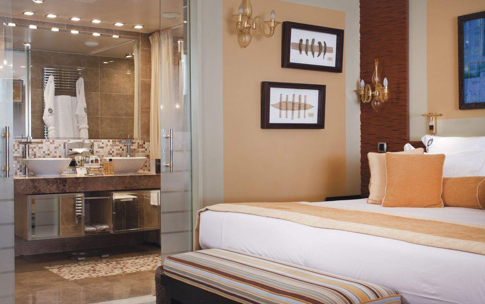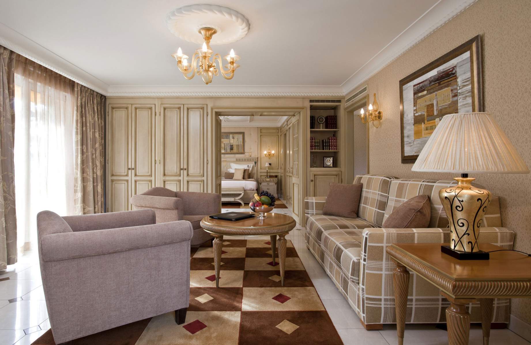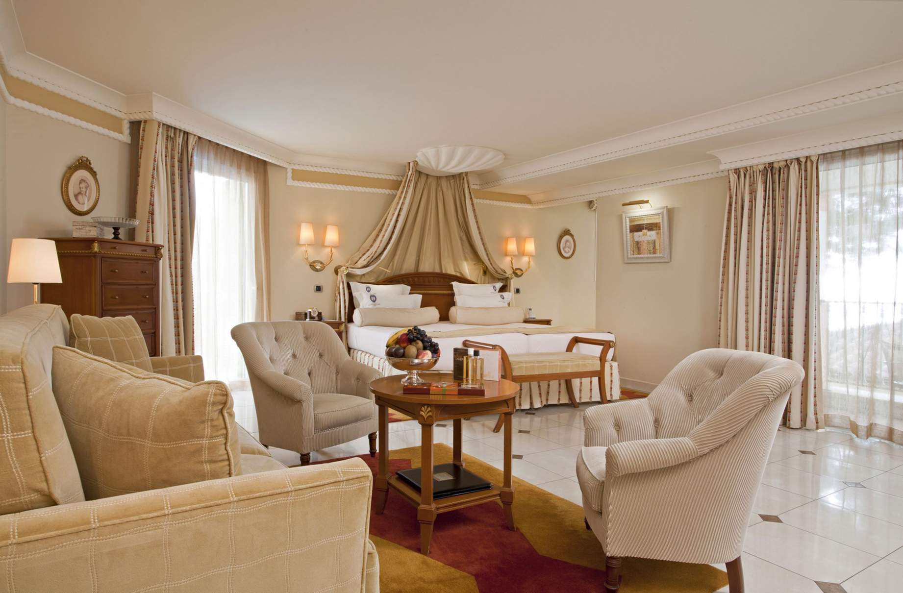 Suite: 60-70 м2. Роскошные номера, состоящие из спальни с кроватью king-size или twin beds, отдельной гостиной с диваном, ванной комнаты с ванной и душем, террасы с видом на море.