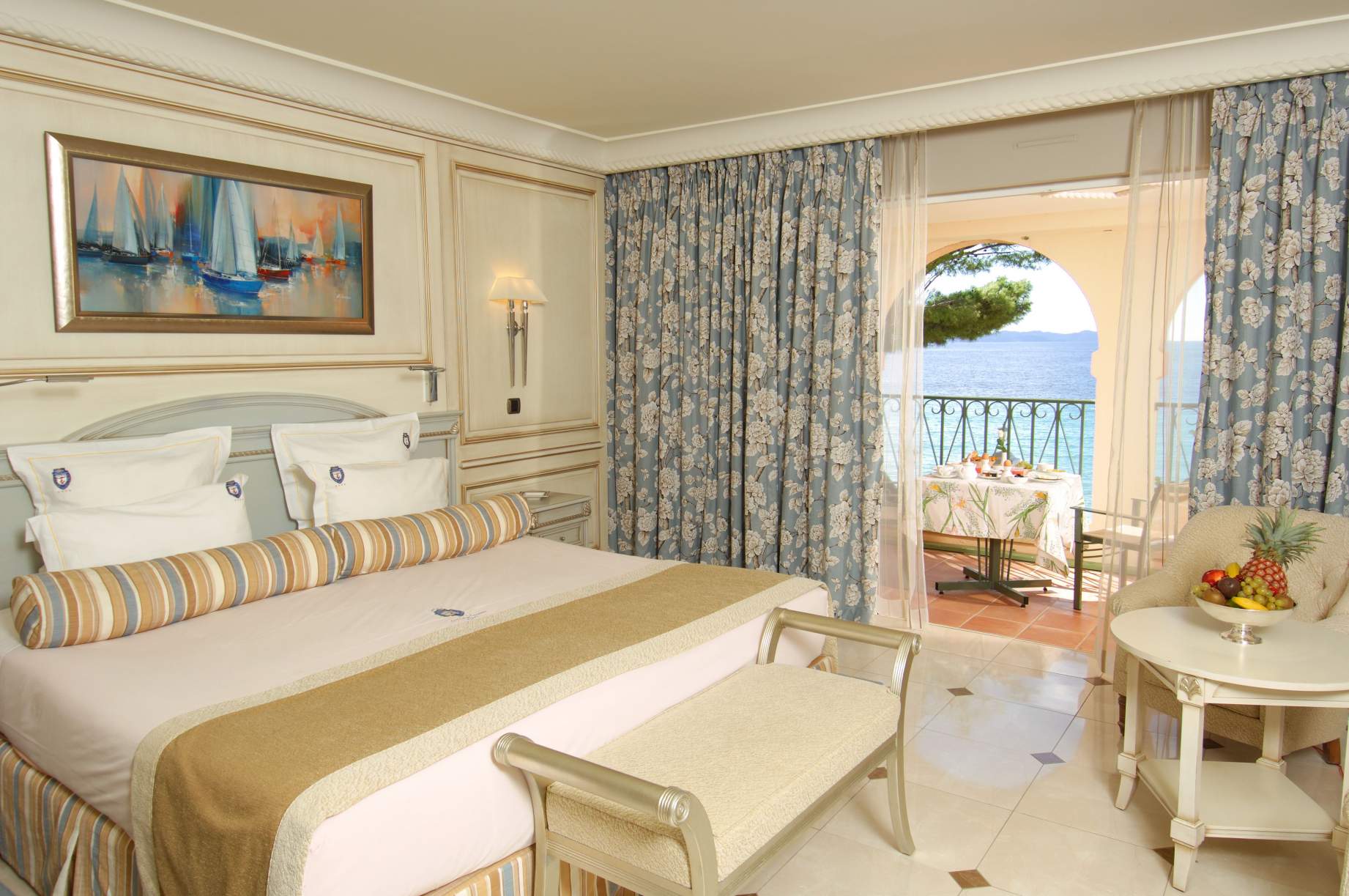 В отеле 37 комфортабельных номеров различных категорий, включая Room и Suite. Интерьеры номеров выдержаны в теплых голубых и золотистых тонах и выполнены в элегантном неоклассическом стиле, дополненном прованскими акцентами: изящная мебель, изысканные ткани, утонченные произведения искусства, просторные террасы с чарующим видом на сверкающую гладь моря. Также отель располагает двумя комфортабельными виллами, расположенными у моря.