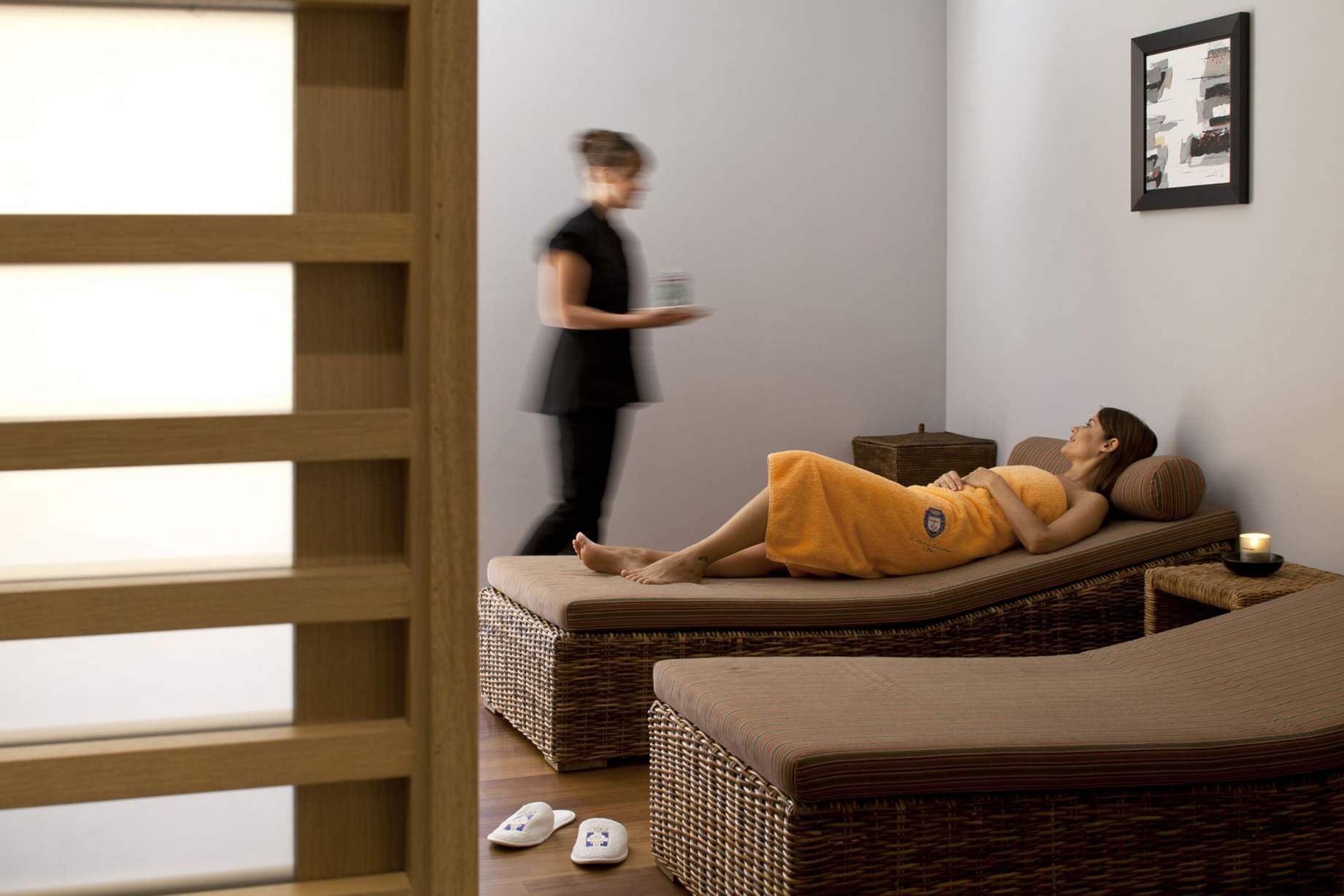 В отеле открыт прекрасно оборудованный СПА центр площадью 225 м2 с открытой джакузи, хамамом, фитнес-залом, зоной отдыха и процедурными кабинетами, где предлагается широкий выбор услуг по уходу за телом и процедур по уходу за лицом с использованием швейцарской косметики Valmont.