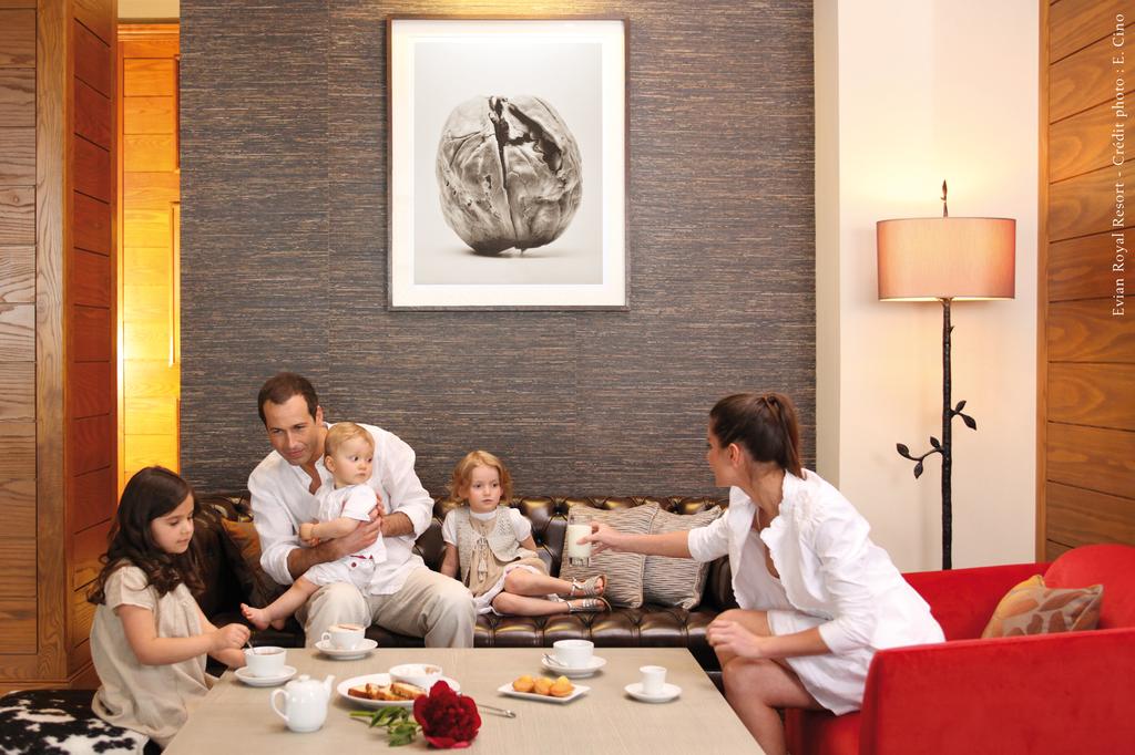 Гостям с детьми предлагает свои услуги детский клуб Kid's Resort, рассчитанный для детей разных возрастных групп от 4 месяцев до 16 лет, где профессиональные педагоги работают по специальным программам для развития детей. Отель располагает первоклассным СПА-центром Spa Quatre Terres, где гостям предлагается широкий спектр процедур по уходу за телом и лицом, на основе минеральной воды "Evian" в лучших традициях тибетской и китайской медицины. Фитнес-зал, оснащенный профессиональным оборудованием, находится на территории СПА-центра и предлагает услуги индивидуального тренера. В нескольких минутах ходьбы от отеля расположен знаменитый гольф-клуб курорта Evian. Любители азартных игр смогут попытать счастье в казино курортного комплекса. Для гурманов работают два элегантных ресторана, где подаются изысканные блюда французской кухни, а также 2 уютных бара, где можно расслабиться и отведать фирменные коктейли и другие напитки.