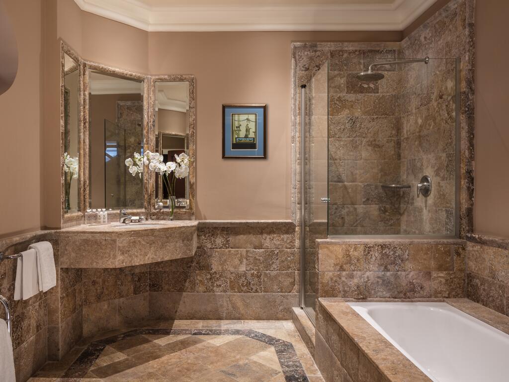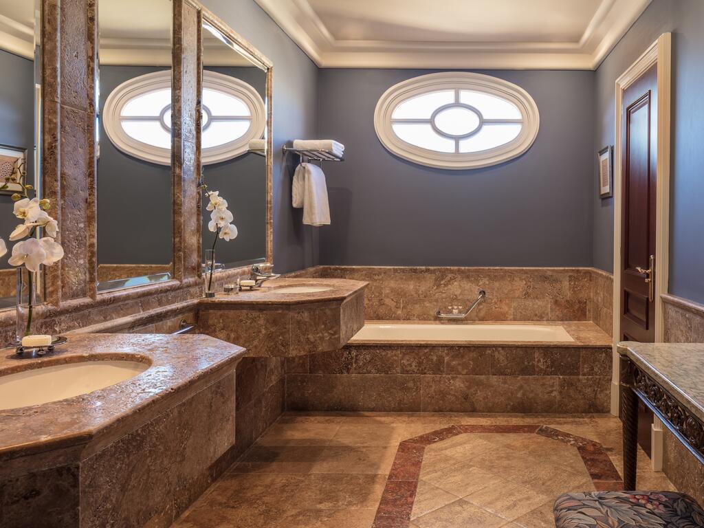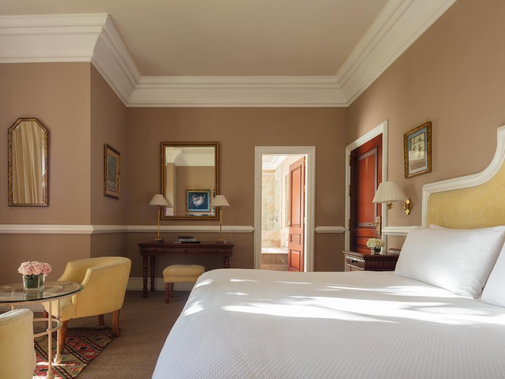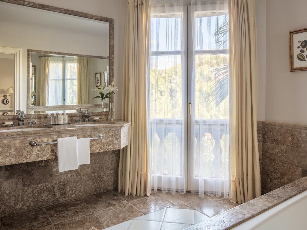 Junior Suite: 43-48 м2. Номера Junior Suite отличаются классической элегантностью с шикарной мебелью, полированным деревом, люстрами над головой и персидскими коврами под ногами. Спальня с мраморной ванной комнатой выходит в солнечную гостиную. Проводите спокойные дни с видом на ухоженные сады и возвышающиеся за ними горы.