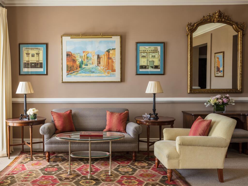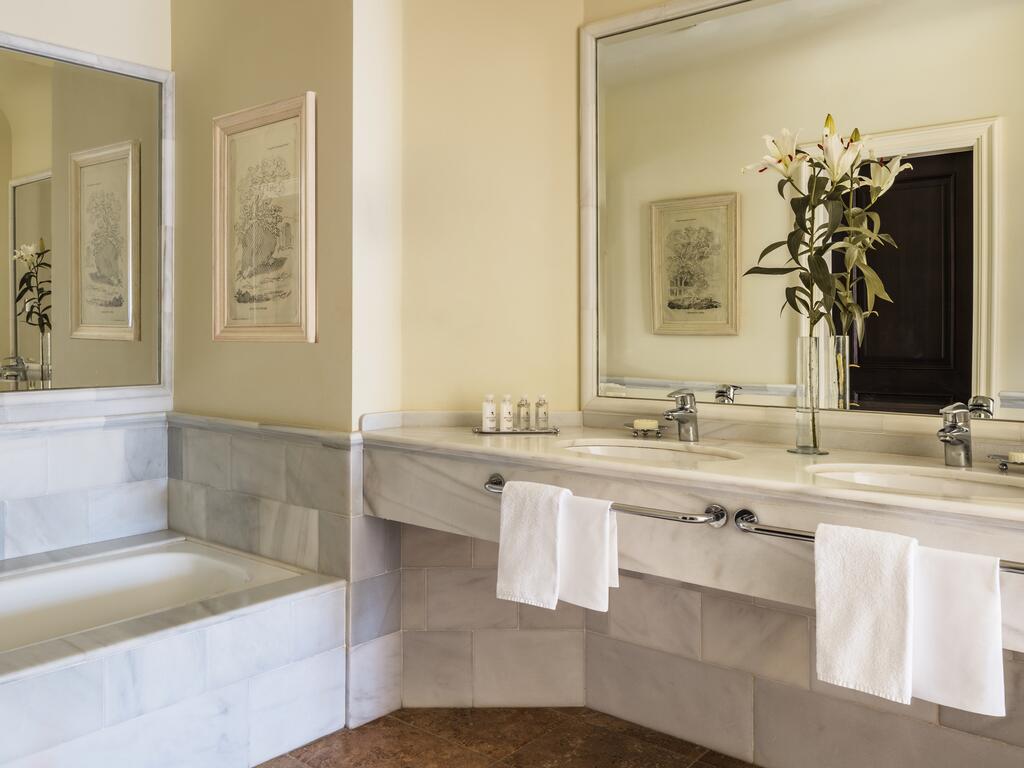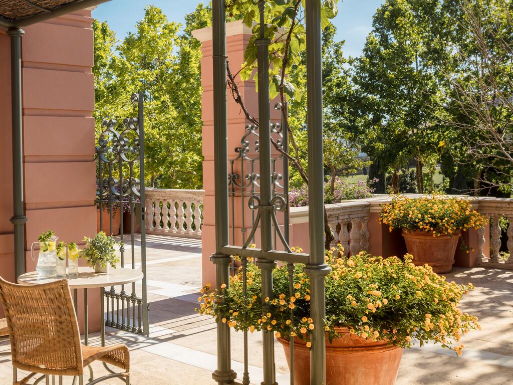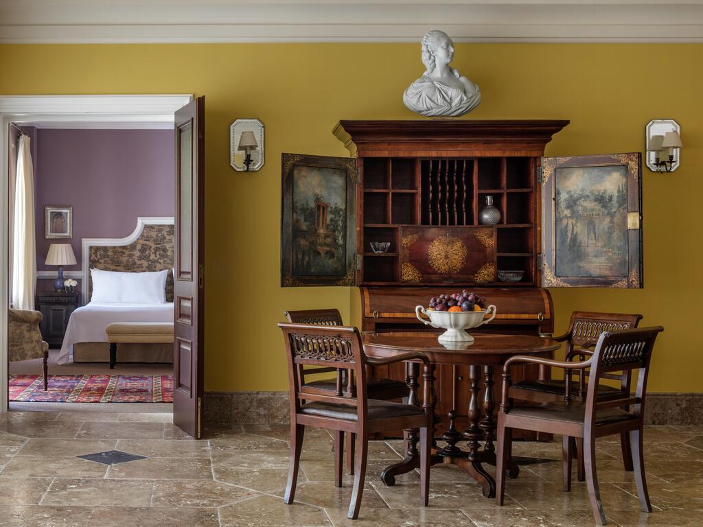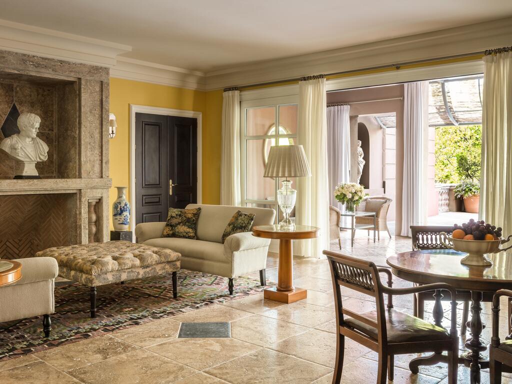 Terrace Suite: 75-80 м2. Номер Terrace Suite отличается просторной гостиной, которая выходит на отдельную террасу. Это место, окруженное кипарисами, идеально подходит для ужина. Внутри вас ждет роскошный декор — от мраморной ванной комнаты до старинных произведений искусства.