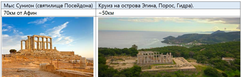1.В районе Афин (мыс Сунион и достопримечательности самих Афин)