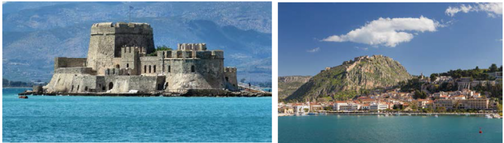 · Нафплион – живописный городок, названный венецианцами Napoli di Romania, а позже избранный греками первой столицей молодого Греческого государства. Крепость Паламиди и форт Бурдзи напоминают о тяжелой истории города и завоеваниях.