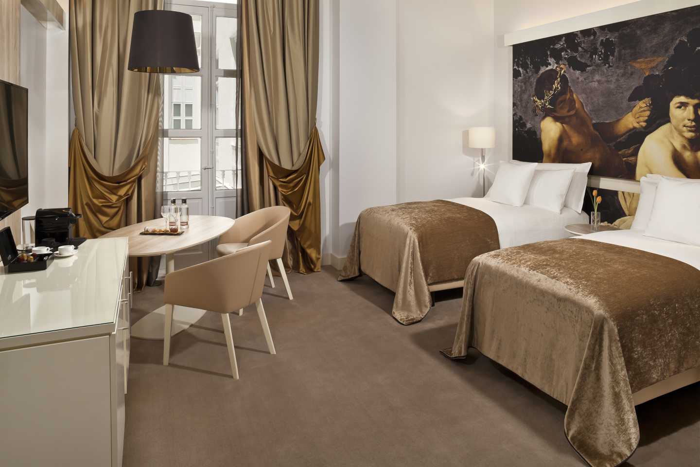 Отель располагает 180 номерами различных категорий, включая Guest Room и Suite. Роскошные интерьеры номеров навеяны знаменитой картиной Веласкеса «Менины», а из окон и с террас открывается прекрасный вид на исторический центр Мадрида, тихое патио и старинный сад отеля. Также отель располагает шикарным лаунджем RedLevel с библиотекой и открытой террасой, гостям которого предлагаются дополнительные услуги персональная регистрация, завтраки, закуски и напитки в течение дня, бизнес-сервис, услуги персонального консьержа и другой VIP-сервис.