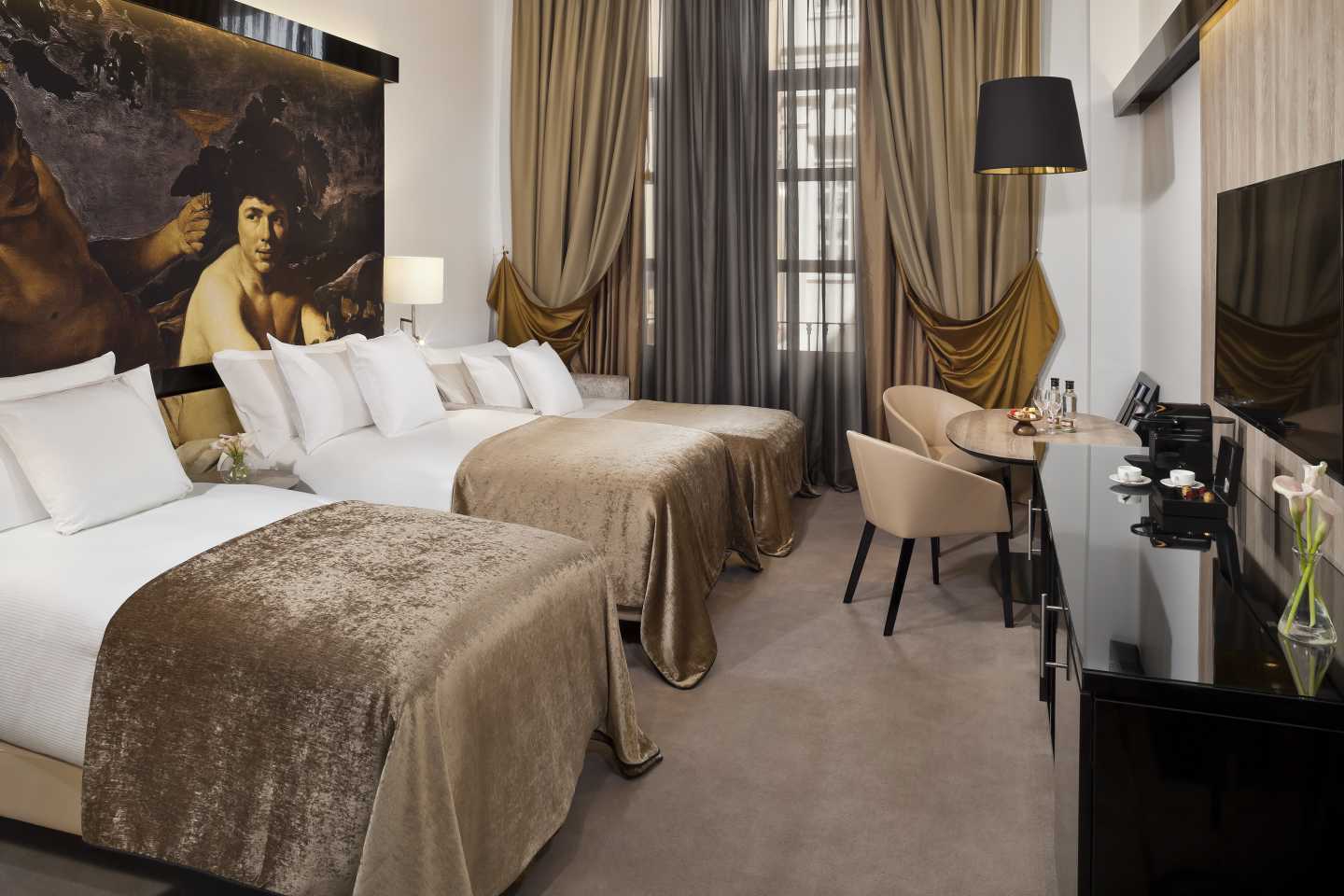 Роскошный отель Palacio De Los Duques, a Gran Melia Hotel расположился в потрясающем дворце с прекрасным садом площадью 1000 м2. Отель находится исторической части Мадрида, в престижном Австрийском квартале и в нескольких шагах от Королевского театра, собора Альмудена и Королевского дворца. Отель состоит из двух исторических зданий: монастыря XIII века и герцогского дворца XIX века. Оба здания были тщательно реставрированы и оформлены в авангардном стиле. За величественным фасадом Palacio De Los Duques скрываются шикарные интерьеры, навеянные полотнами Веласкеса, выставленными в знаменитом музее Прадо, также находящемся поблизости. Фешенебельный отель Palacio De Los Duques, a Gran Melia Hotel, входящий в престижную ассоциацию The Leading Hotels of the World, предлагает своим гостям просторные роскошные номера и люксы, три изысканных ресторана, включая Dos Cielos, представляющий изысканные блюда от шеф-поваров – обладателей звезды Michelin, прекрасно оборудованные конференц-залы, Spa-центр в тайском стиле, летний бассейн на крыше, фитнес-зал и другие современные услуги самого высокого уровня. Palacio De Los Duques, a Gran Melia Hotel сочетает безукоризненный сервис, утонченный вкус и историческое наследие испанской столицы.