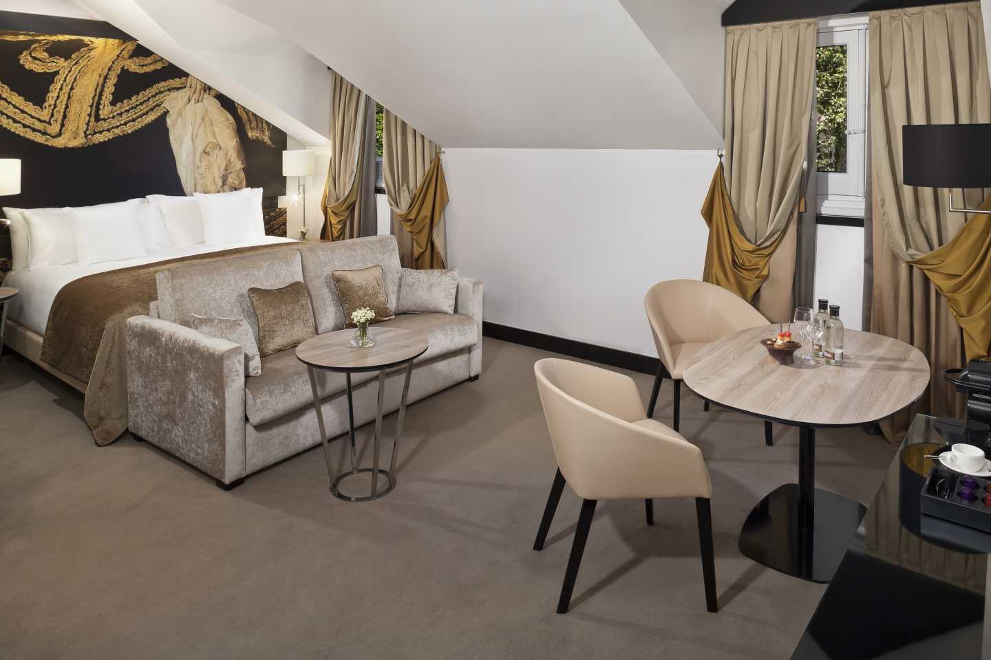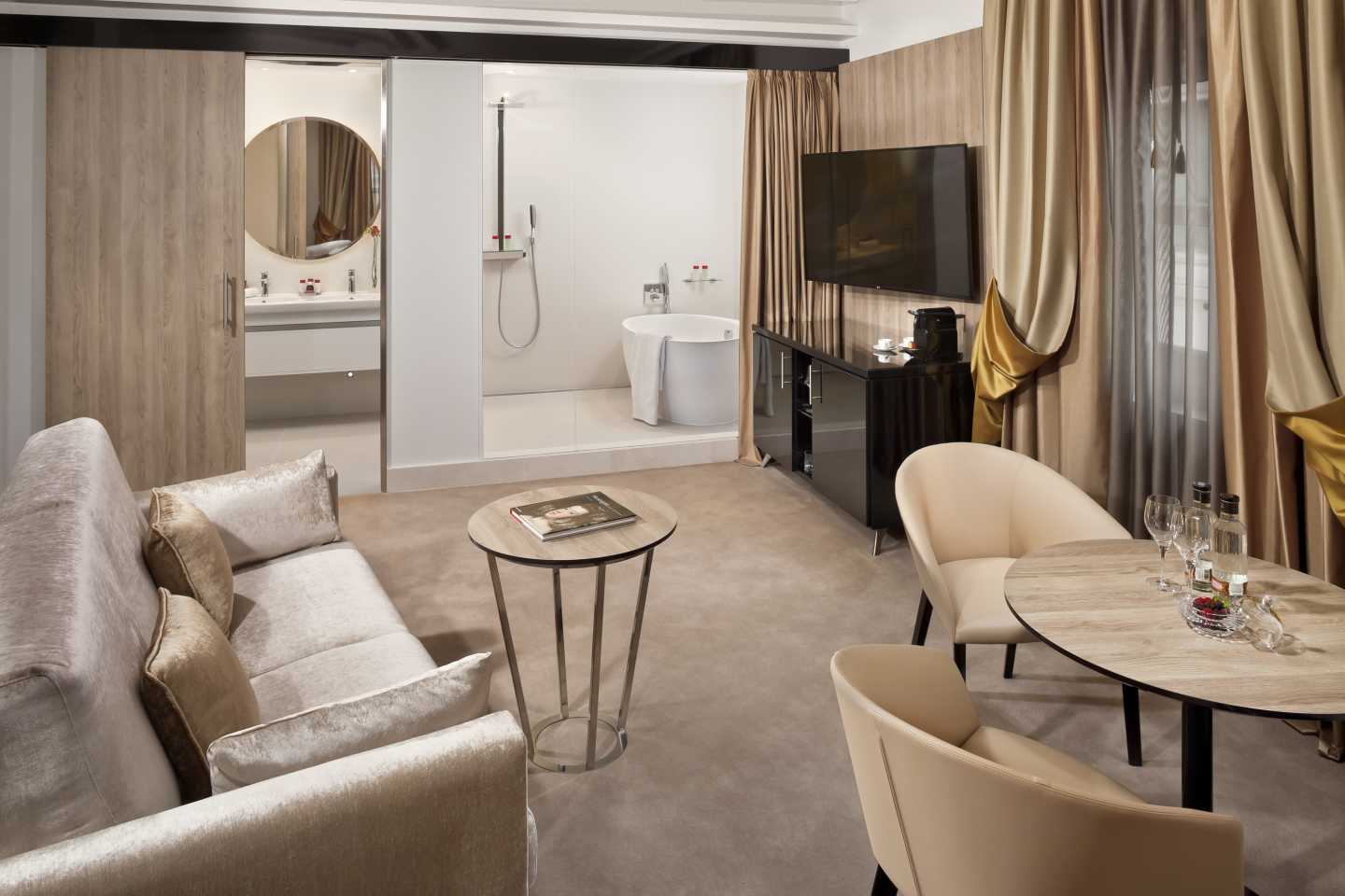 Family Supreme Room: 38 м2. Состоит из спальни с кроватью king-size или двумя односпальными кроватями и зоной отдыха с диваном, гардеробной, ванной комнаты с ванной и ливневым душем. Вид на внутренний двор отеля.