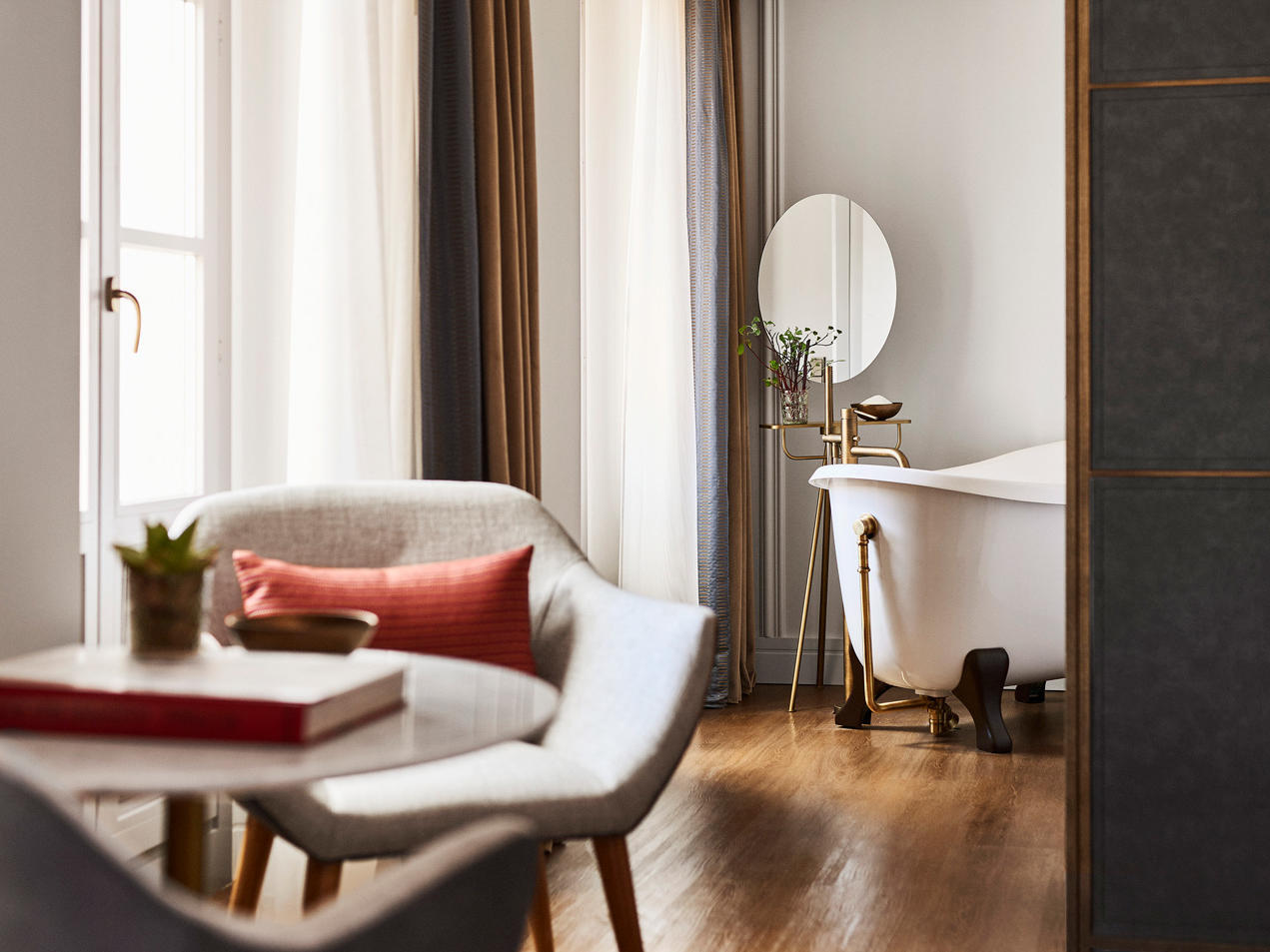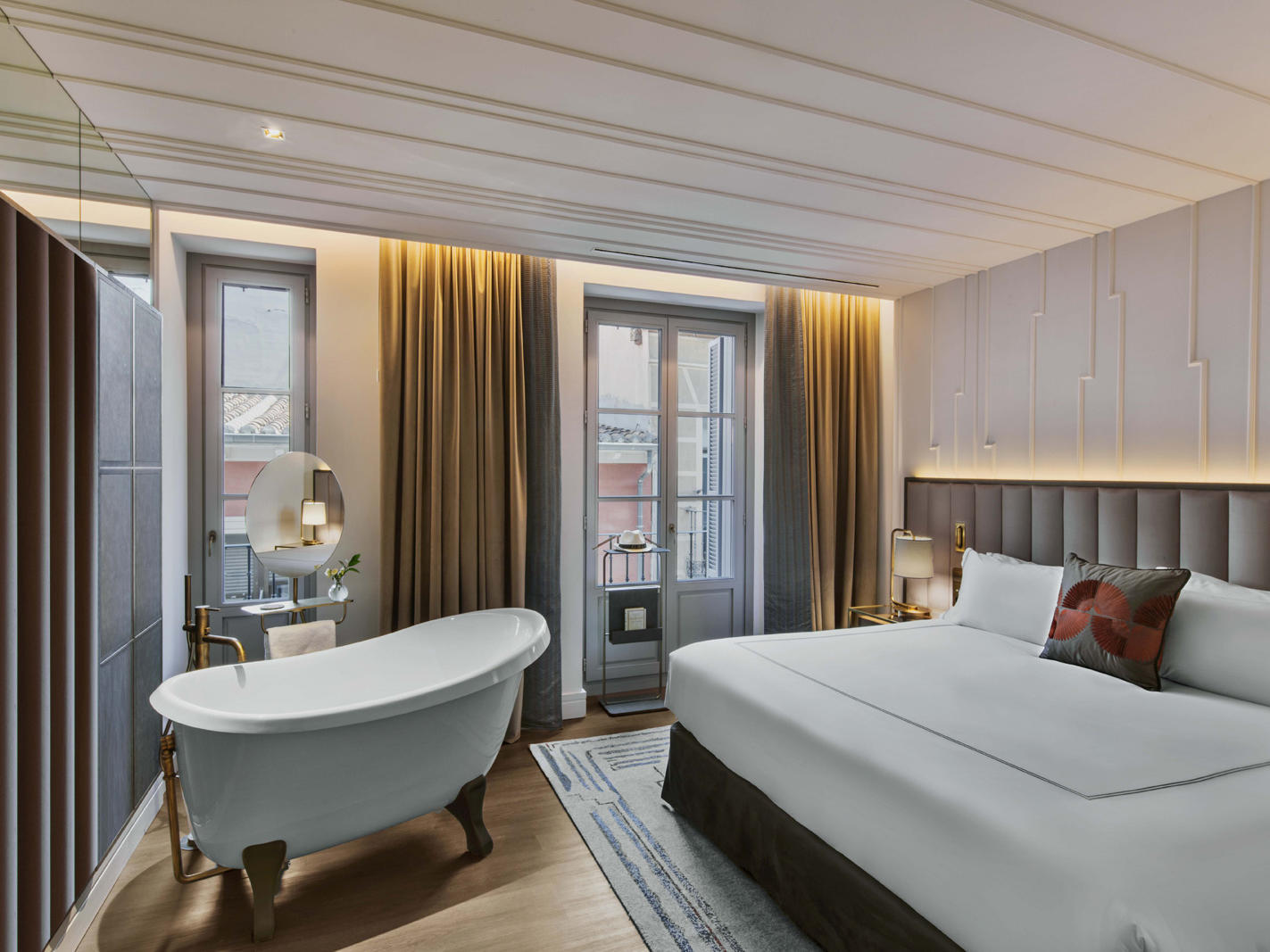 В отеле 48 номеров различных категорий, включая 43 Guest Rooms и 5 Suites. Шикарные интерьеры номеров, созданные известным американским дизайнерским домом David Rockwell, навеяны стилем модерн: изящная мебель, великолепный текстиль, отделка из натуральной кожи и дерева, изысканные элементы декора. Из номеров открывается прекрасный вид на центр Мадрида и на живописный внутренний двор отеля.