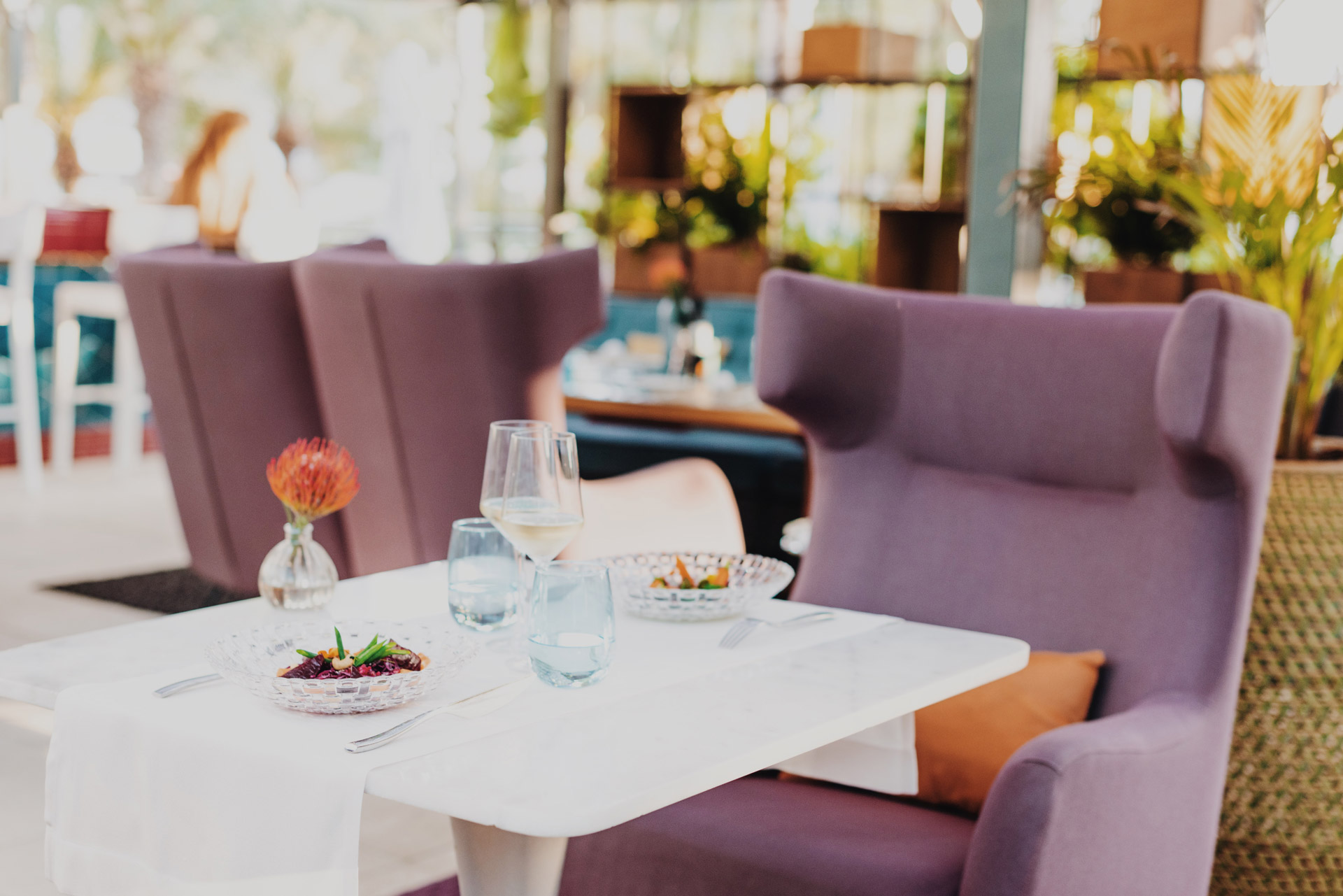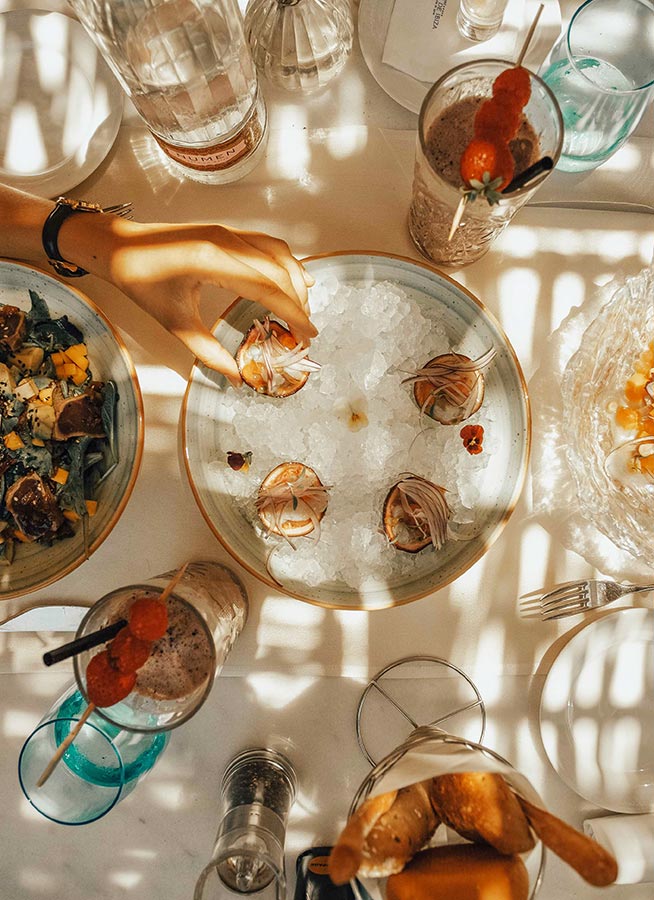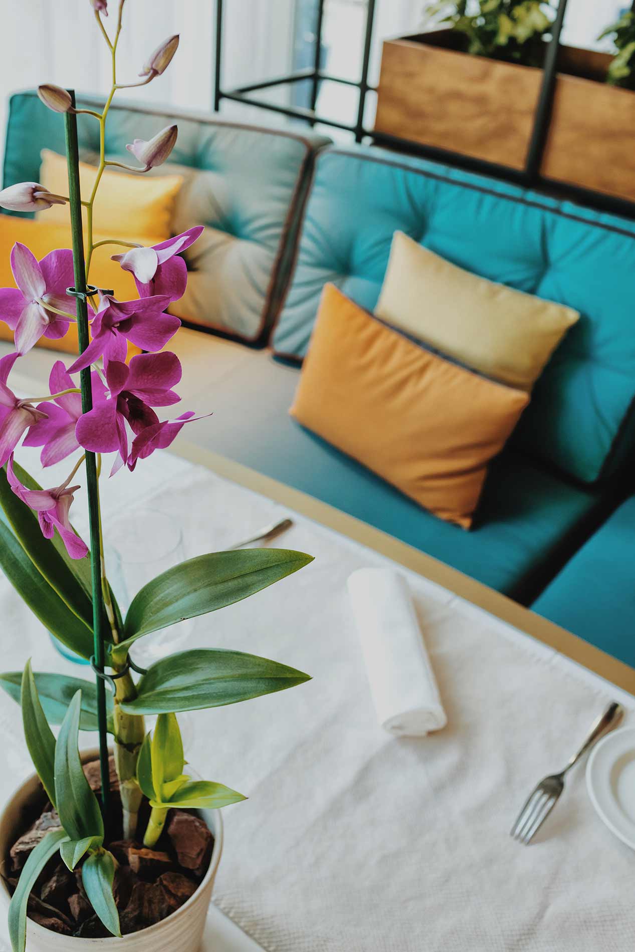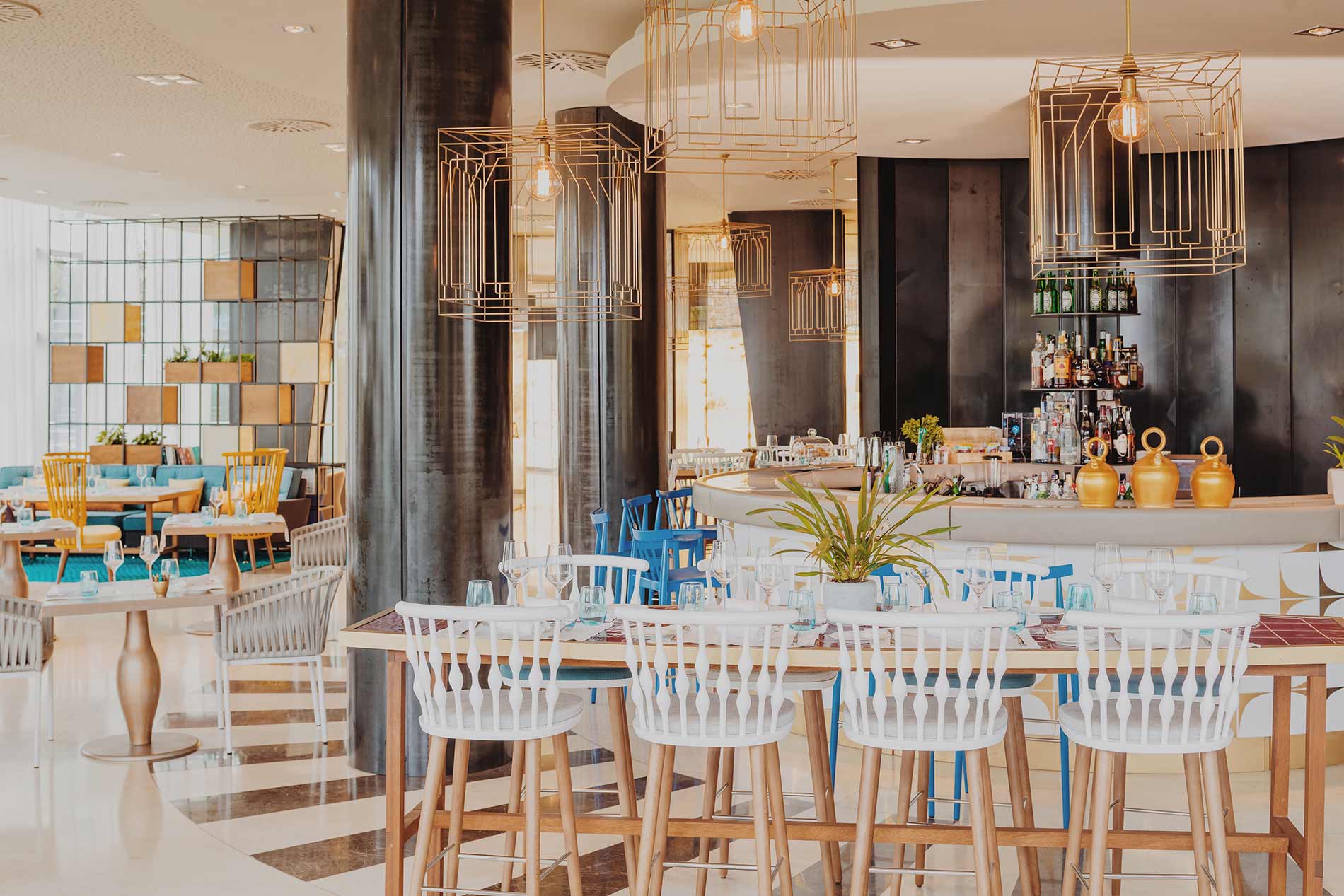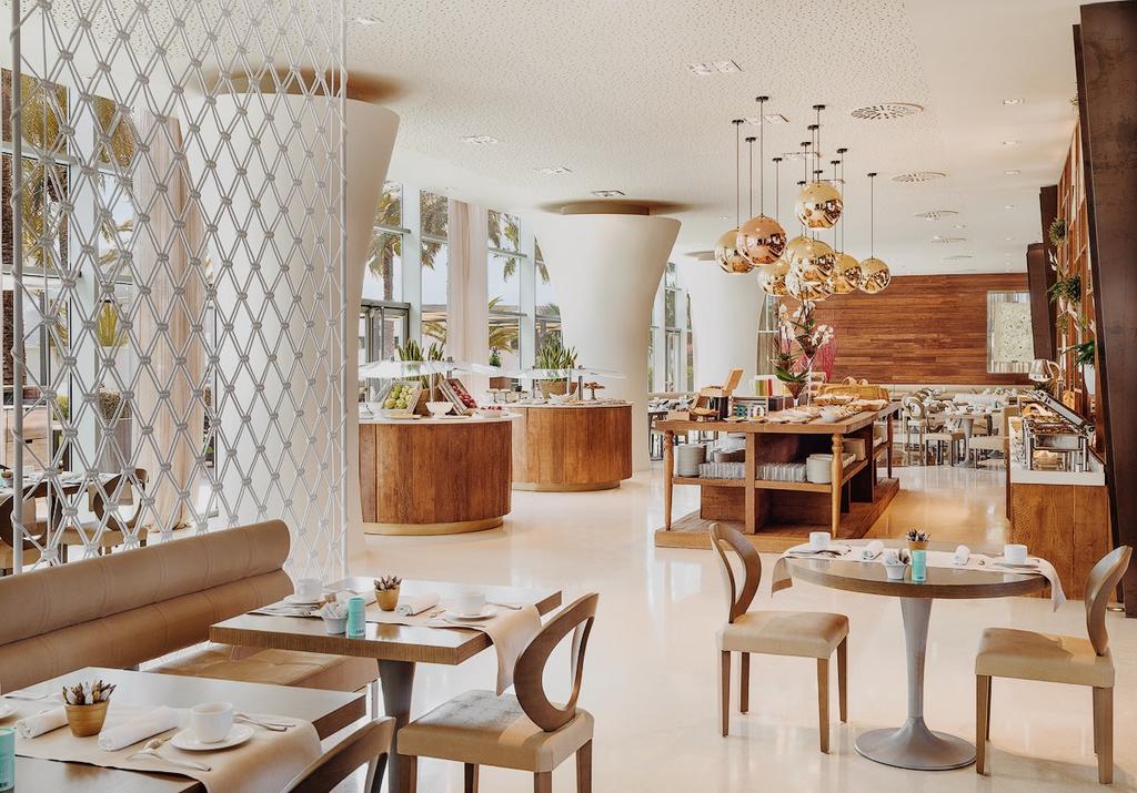 В ресторане на первом этаже Óligo Madeinterranean сервируют богатый шведский стол с блюдами здоровой средиземноморской кухни.