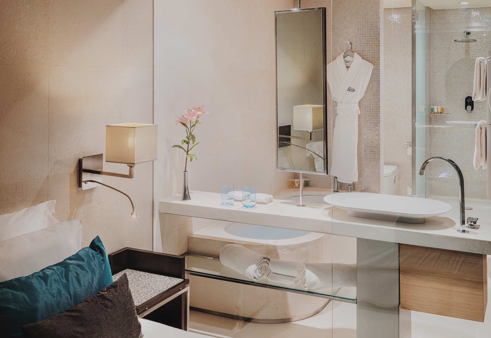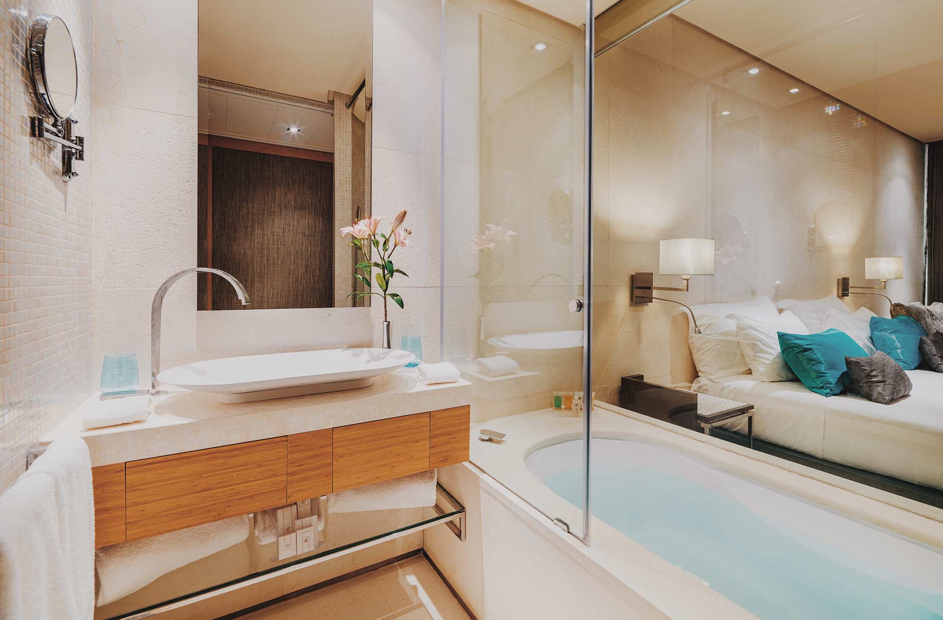 В каждом номере: кондиционер, автоматизированная система управления освещением/шторами, кабельное телевидение, телевизор Bang & Olufsen, радио-будильник, телефон, WLAN, мини-бар; в ванной комнате — ванна/душ, фирменные туалетные принадлежности. Начиная с номеров категории Junior Suite — DVD-проигрыватель Bang & Olufsen; в ванной комнате — фирменные туалетные принадлежностями для ароматерапии.