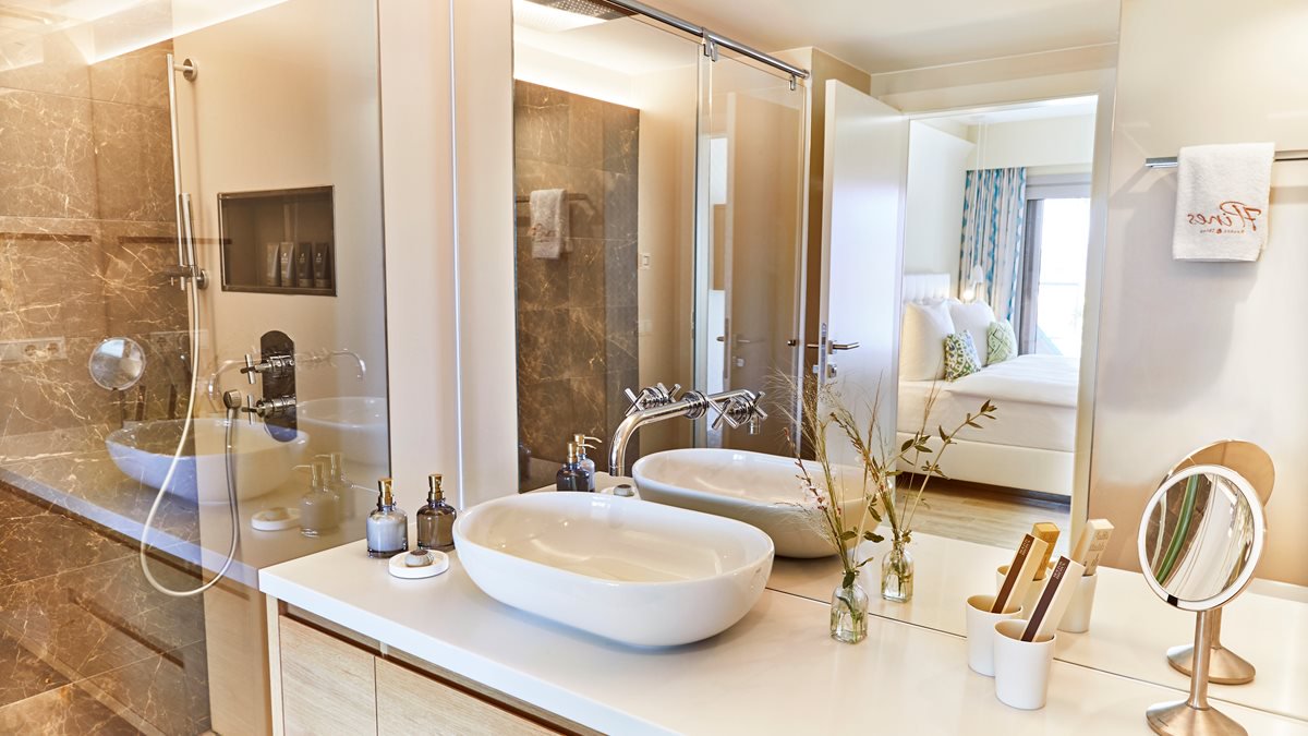 Cliff suite duplex (74 кв. м): двухуровневый номер. Терраса с частным садом, балкон, гостиная с обеденной зоной, 2 спальни, ванная комната, гостевой туалет. Расположены на холме. Вид на море.