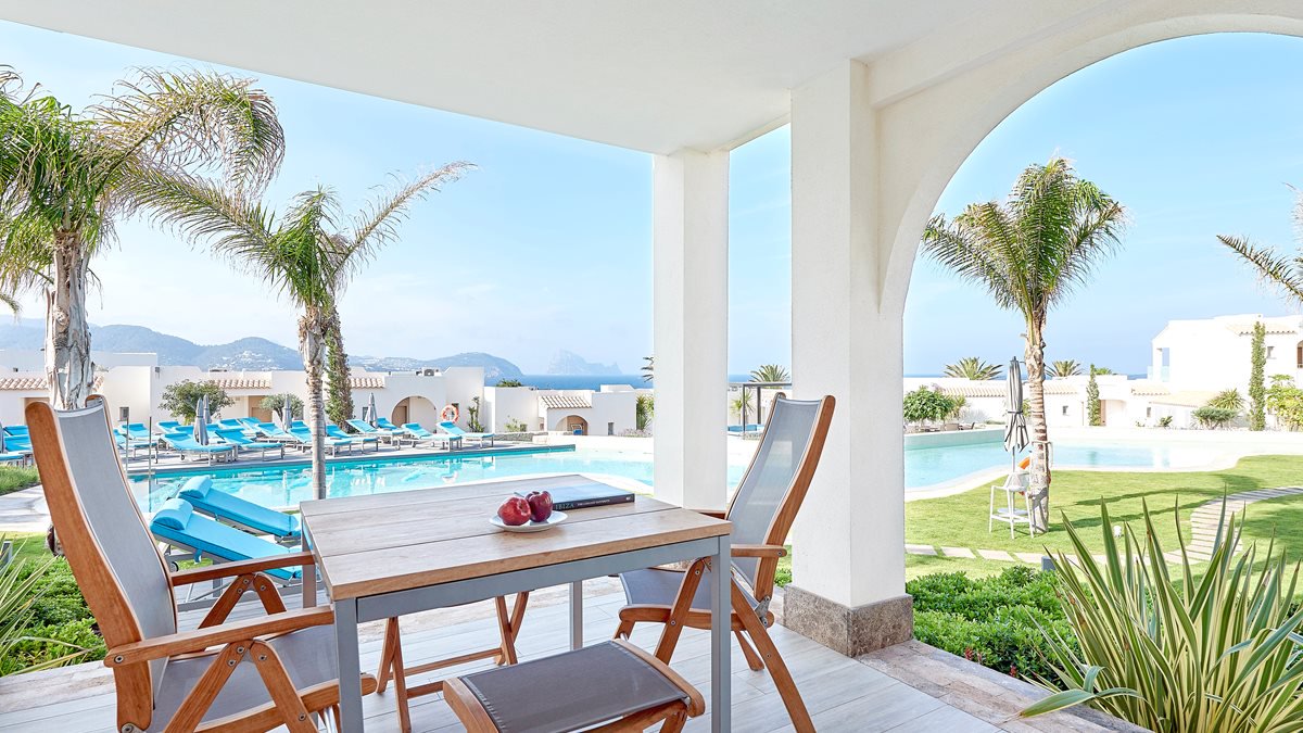 Garden pool suite (The Ibicenco Village) (54 кв. м): открытый персональный бассейн, терраса с частным садом, гостиная, спальня с кроватью king-size или двумя отдельными кроватями, ванная комната. Расположены на первом этаже.