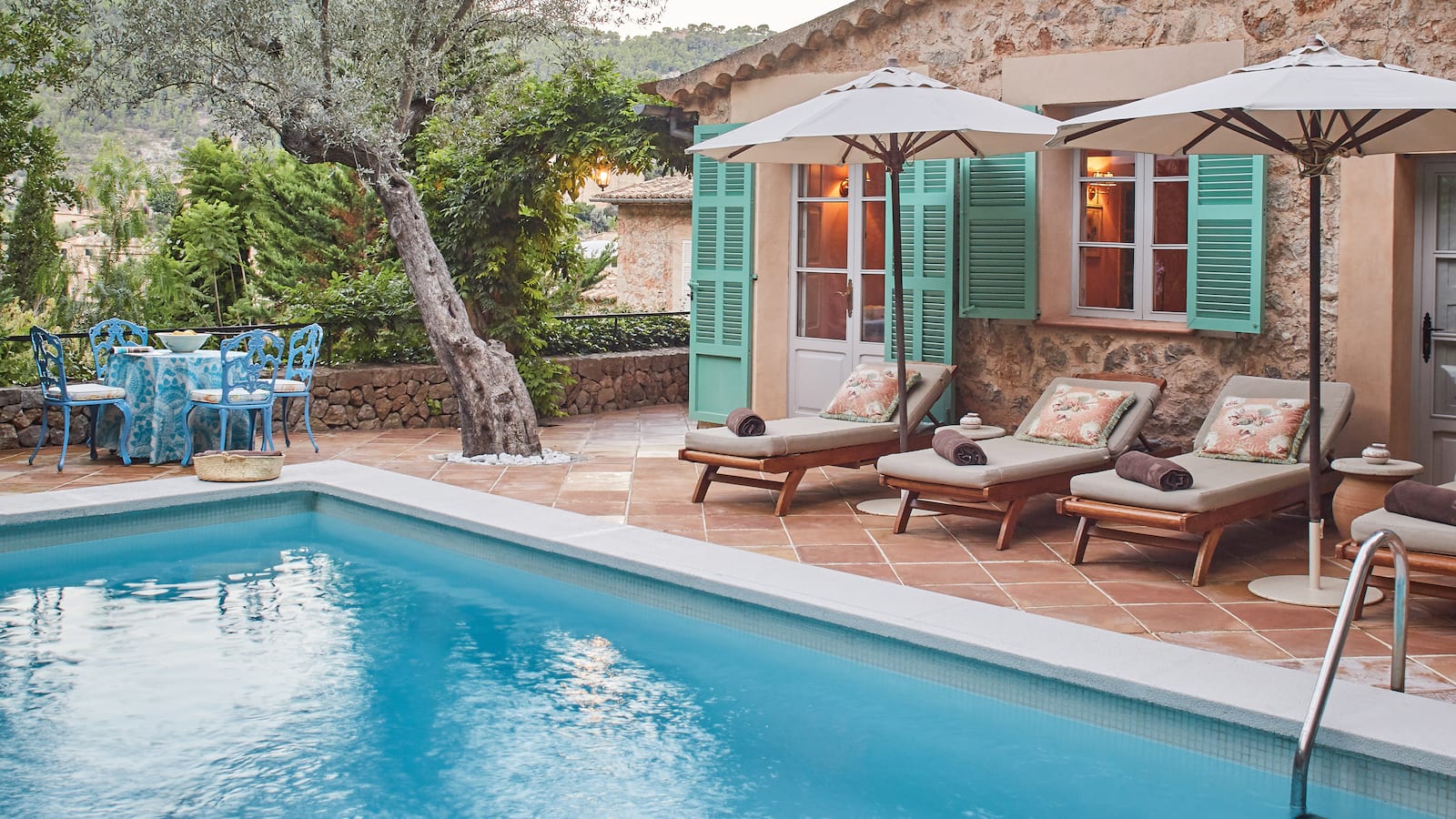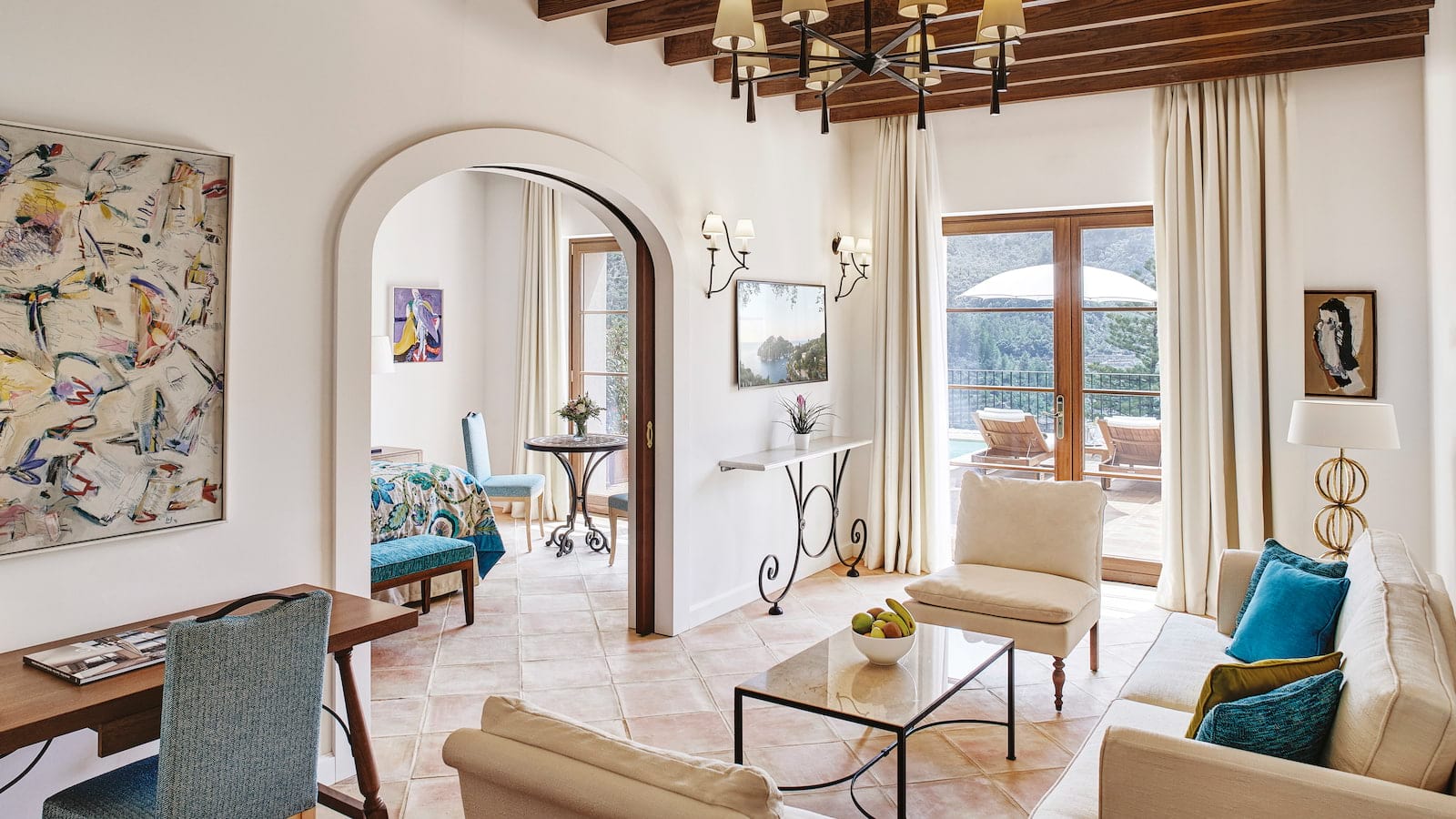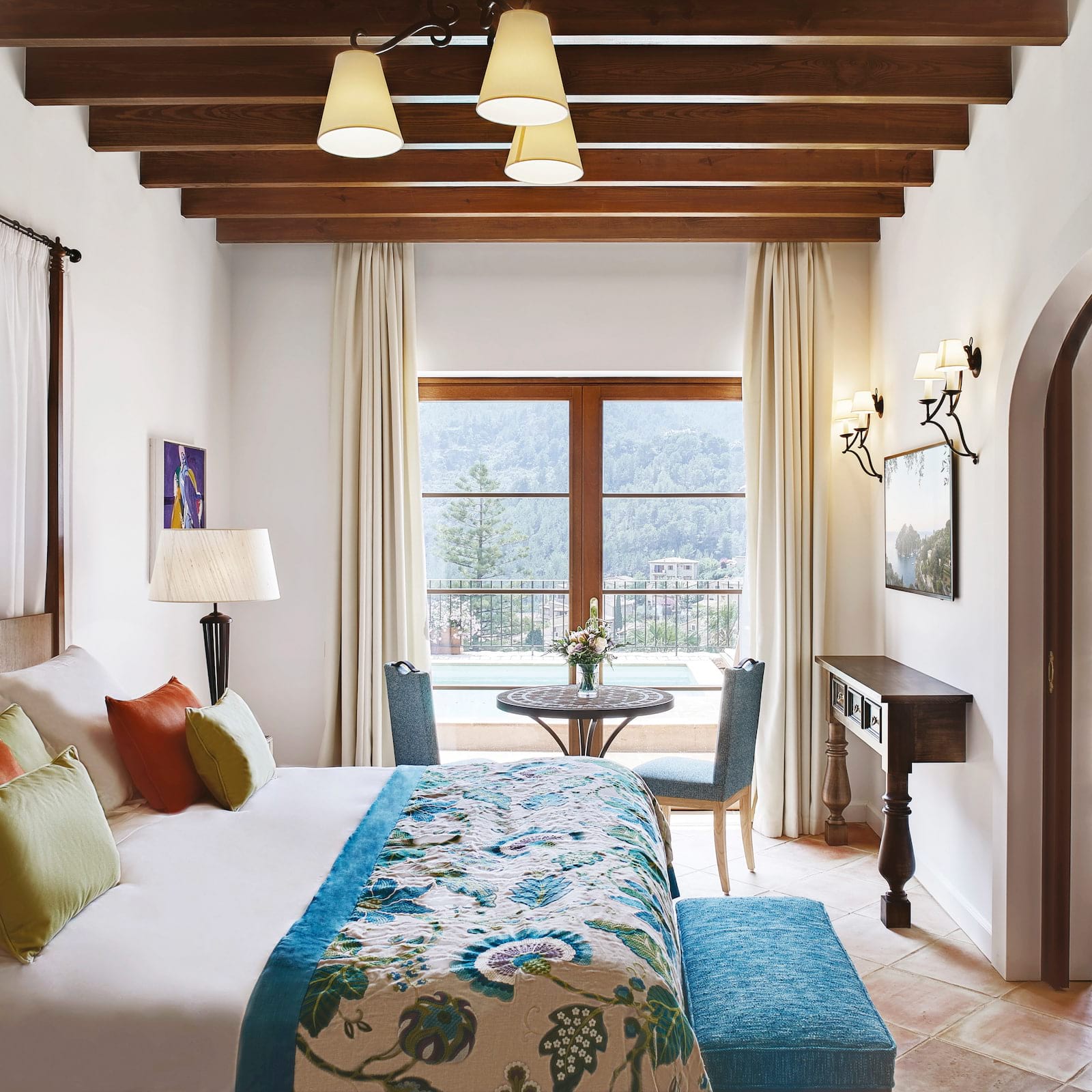 Designer Sute by Matthew Williamson: 200 м2. Дизайнерский номер, состоит из спальни с кроватью King-size, просторной гостиной с диваном, ванной комнаты с ванной и душевой, террасы с садом и бассейном, с великолепным видом на окрестности и горы Трамунтана.