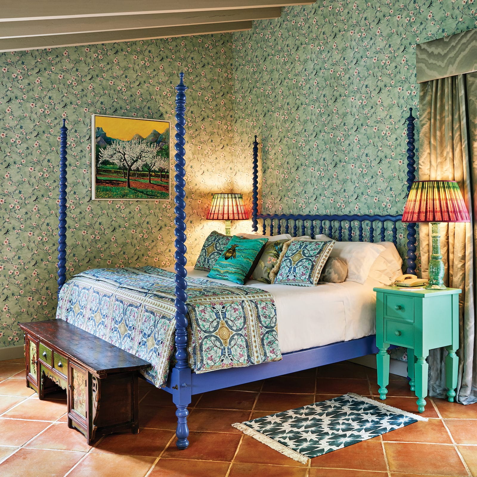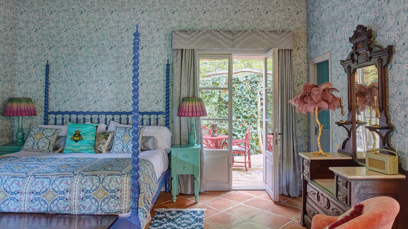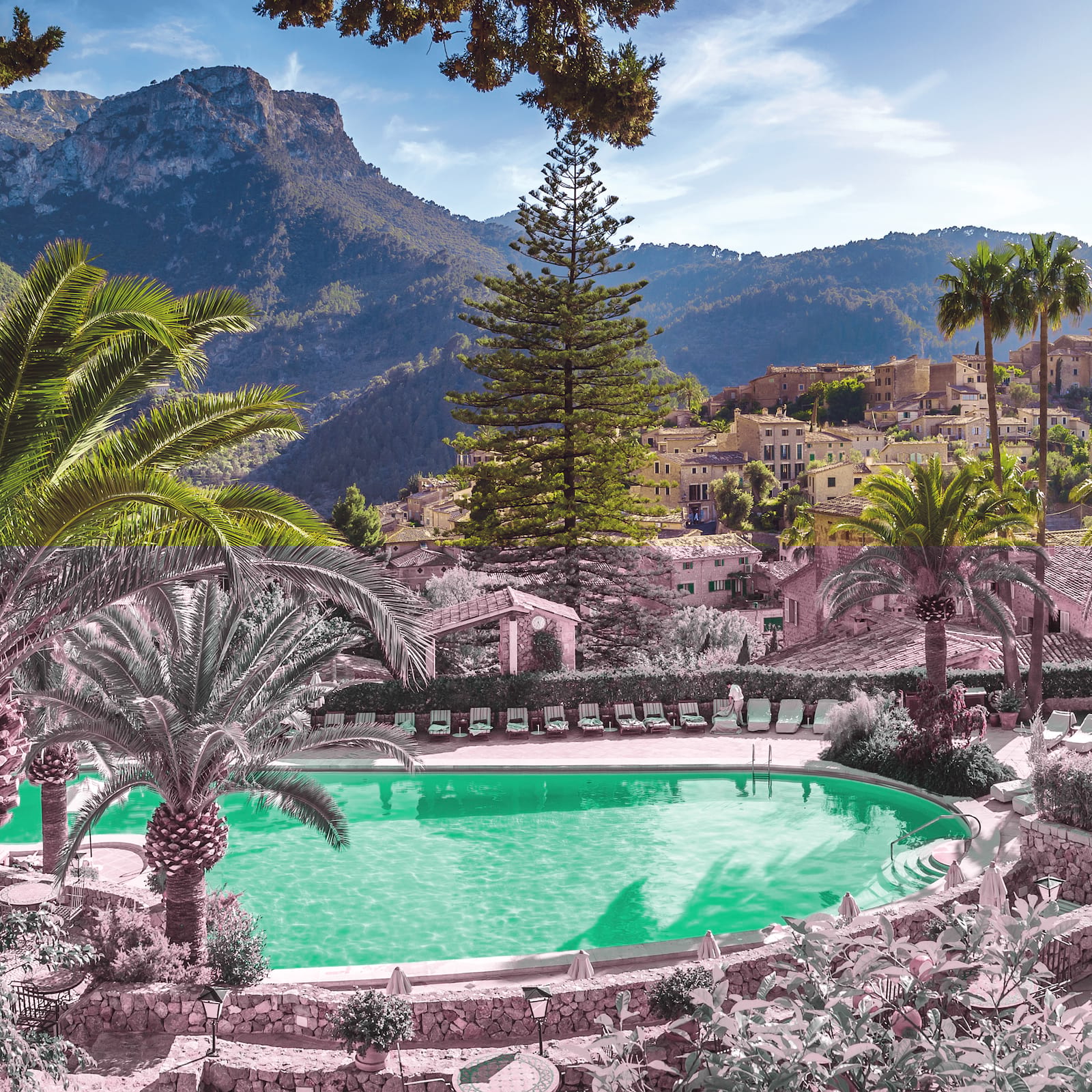 Designer Sute by Matthew Williamson: 200 м2. Дизайнерский номер, состоит из спальни с кроватью King-size, просторной гостиной с диваном, ванной комнаты с ванной и душевой, террасы с садом и бассейном, с великолепным видом на окрестности и горы Трамунтана.