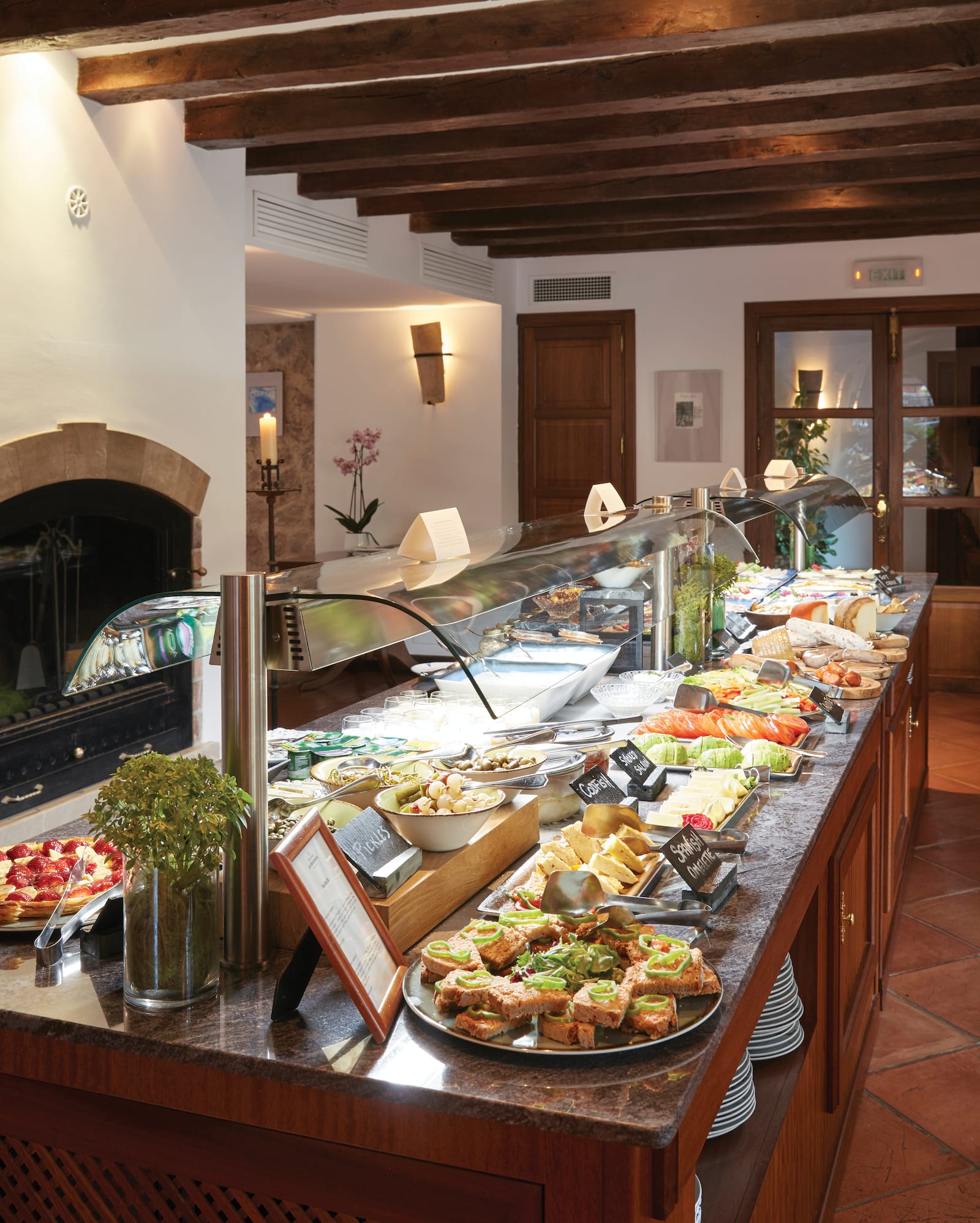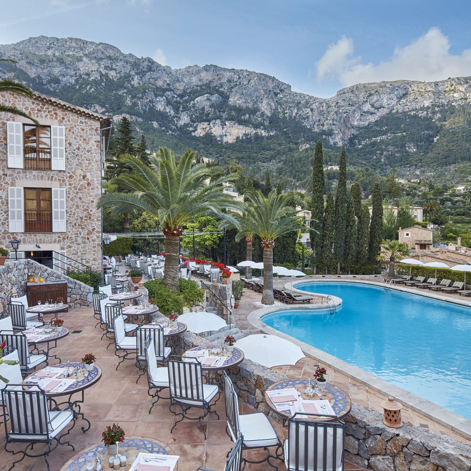 Son Fony - ресторан у основного бассейна с открытой террасой с потрясающим видом на горы Трамунтана, где накрывают богатый буфет на завтрак.
