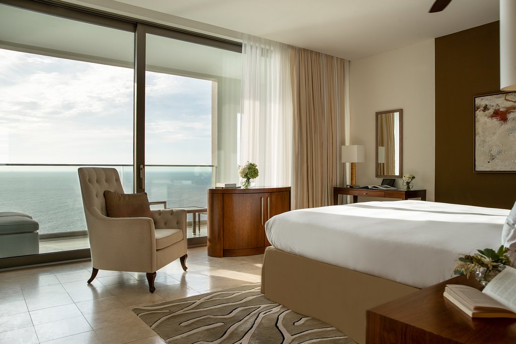 Lighthouse Suite: 110 м2 + терраса 220 м2. Двухуровневый номер с потрясающим панорамным видом на залив и маяк, состоит из спальни, гостиной, ванной комнаты, просторной террасы (220 м2) с зоной отдыха и джакузи. Размещение – 3 взрослых или 2 взрослых+2 ребенка.