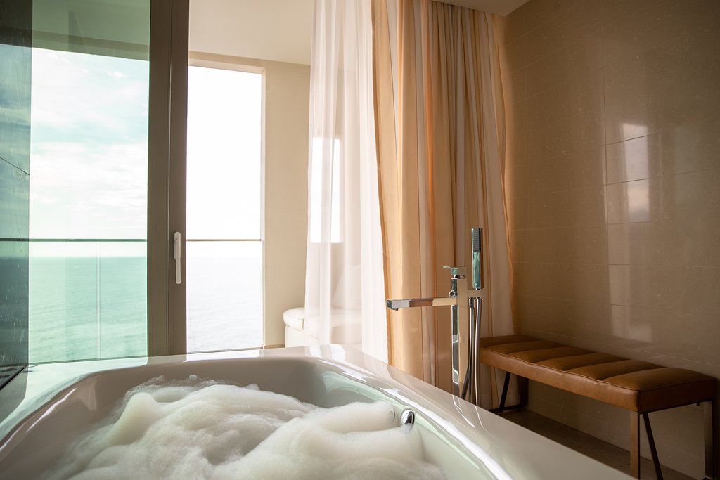 Deluxe Room Sea View: от 35 м2. Состоит из спальни, ванной комнаты с ванной и душем, балкона или террасы с видом на море. Размещение – 2 человека.
