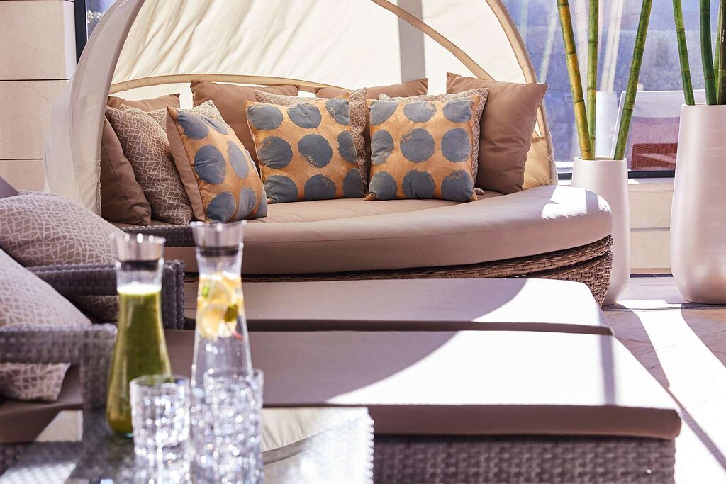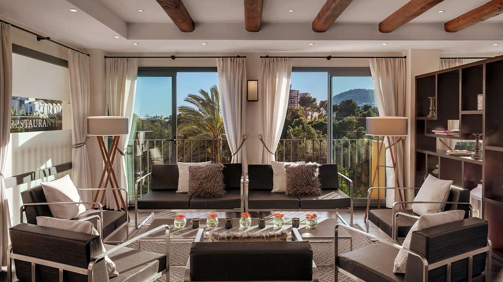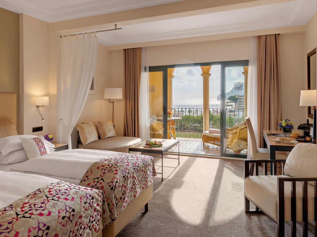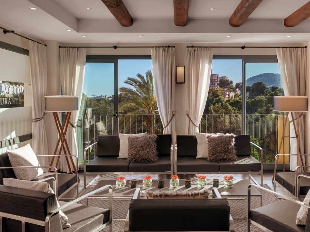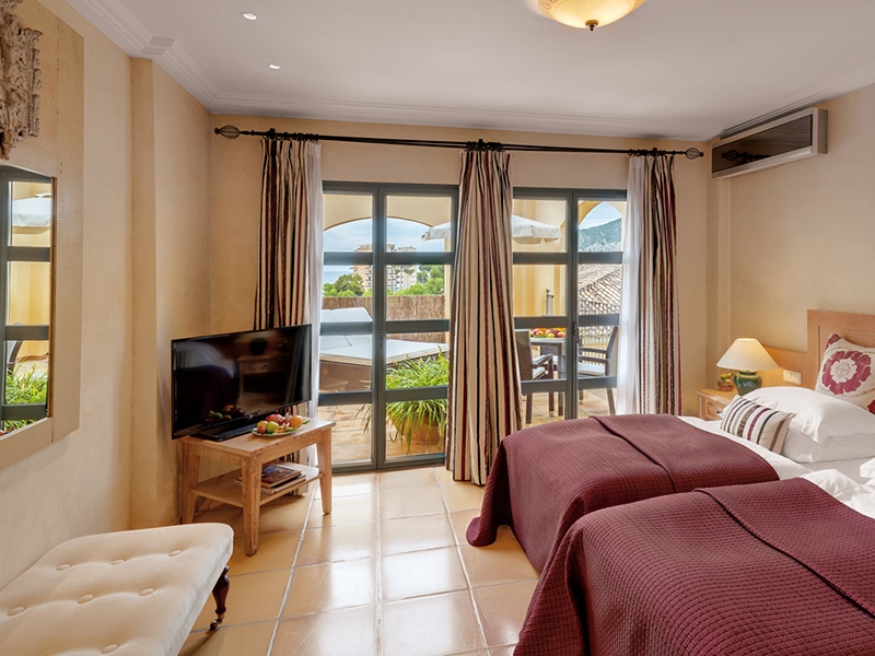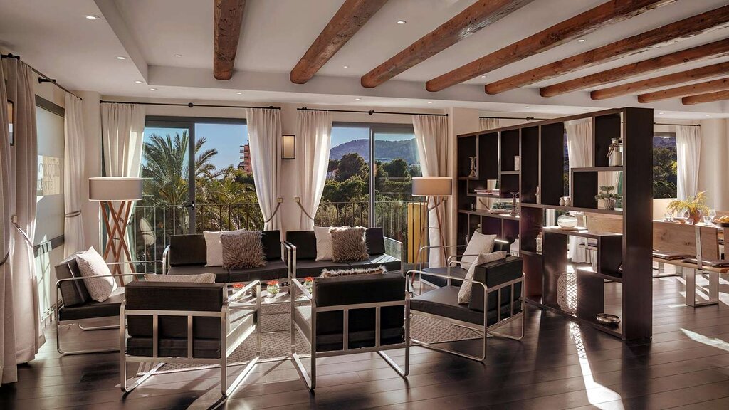 Suite Mallorca: 165 м2. Просторный элегантный номер, состоит из 2 спален, гостиной, барной зоны, 2 ванных комнат, одна из которых с джакузи, двух террас. Вид на бухту.