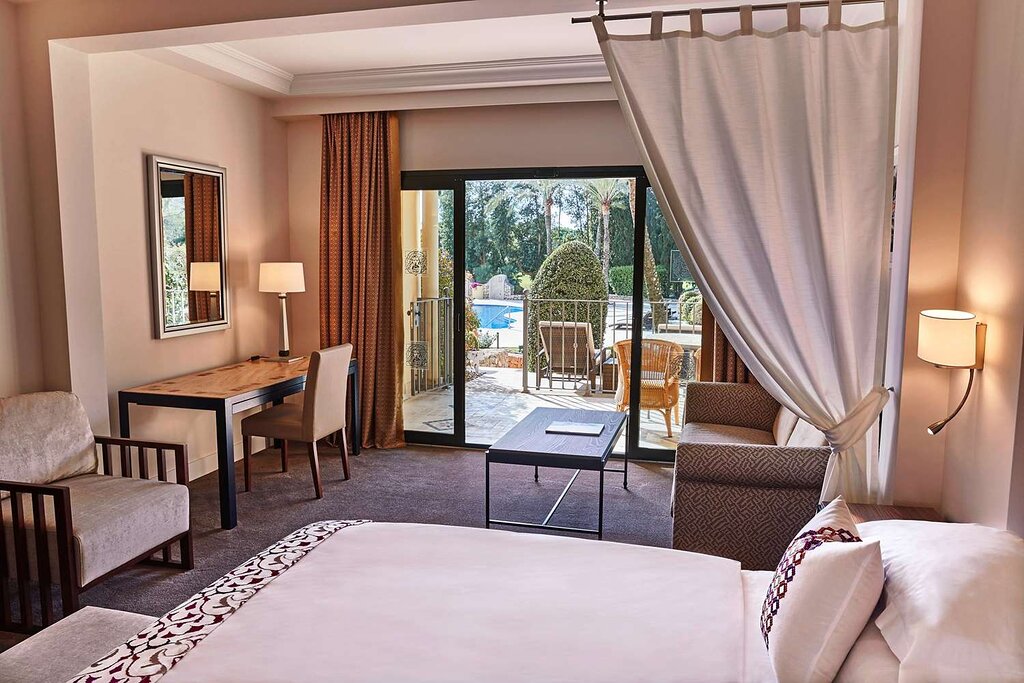 Superior Room Pool View: 45 м2. Реновированные номера, состоят из спальни с двуспальной кроватью и зоной отдыха, ванной комнаты с ванной/душем, балкона или террасы с видом на бассейн и сады.