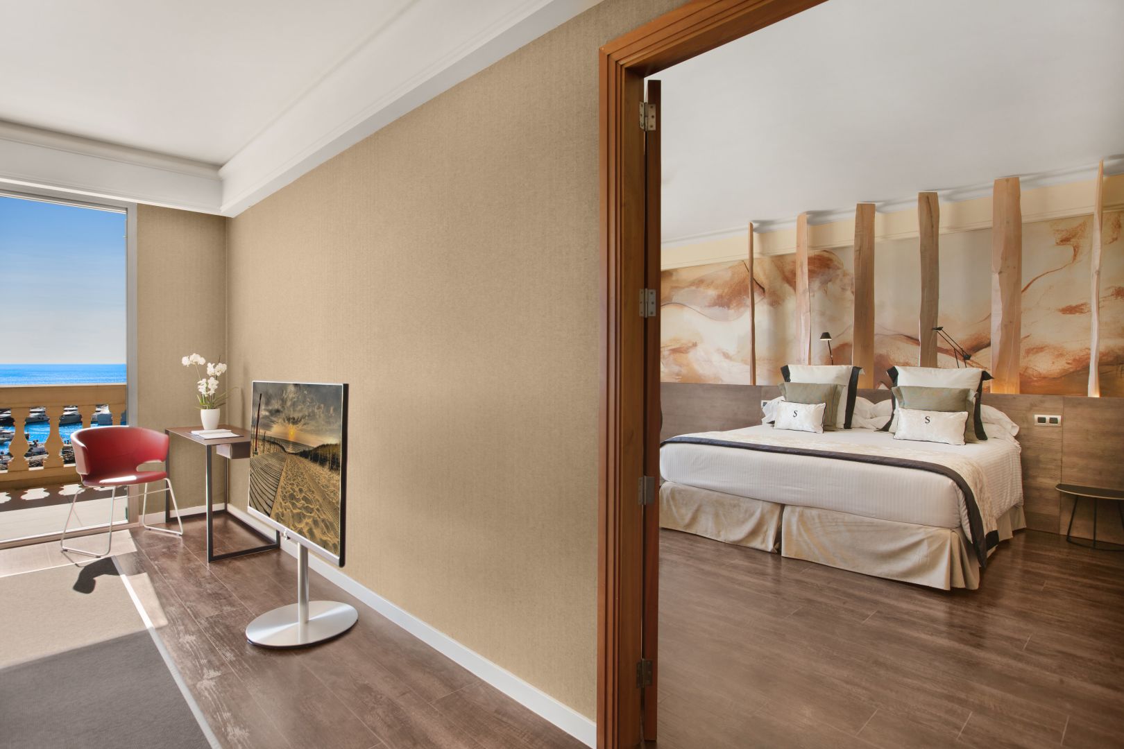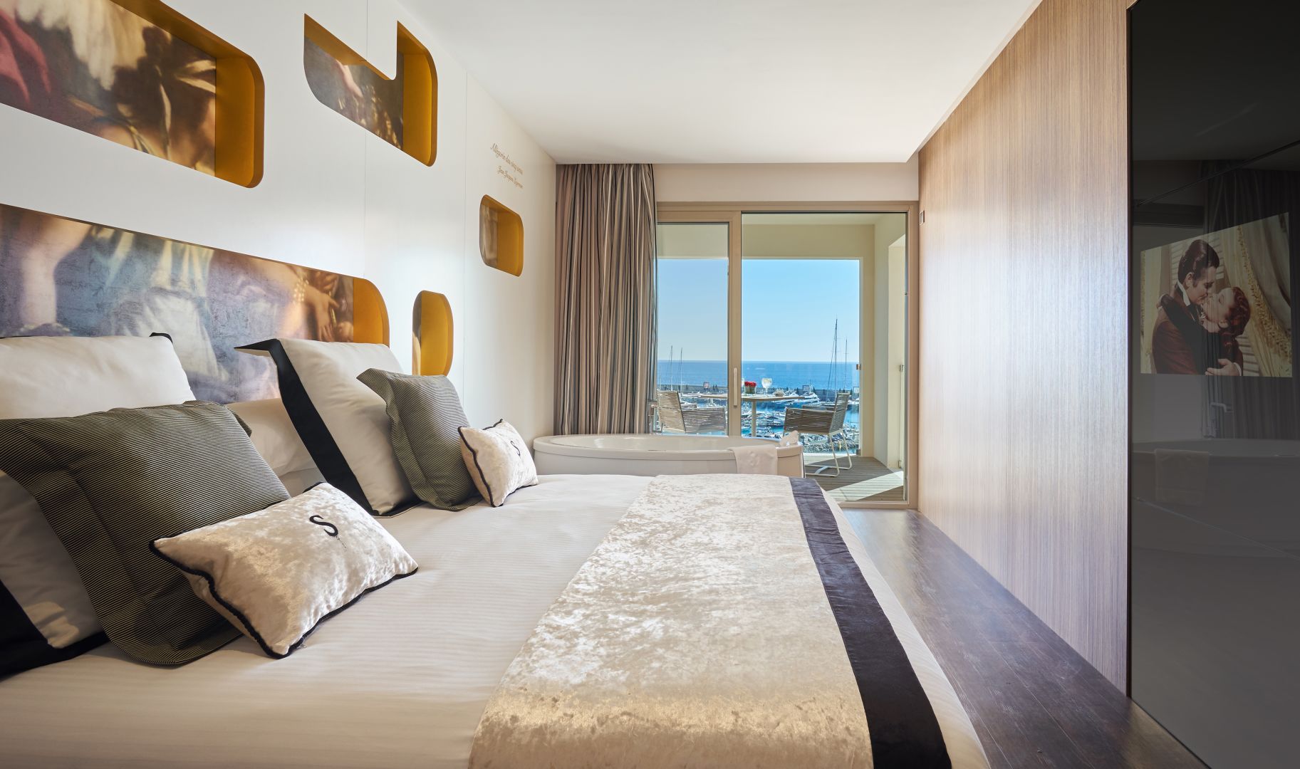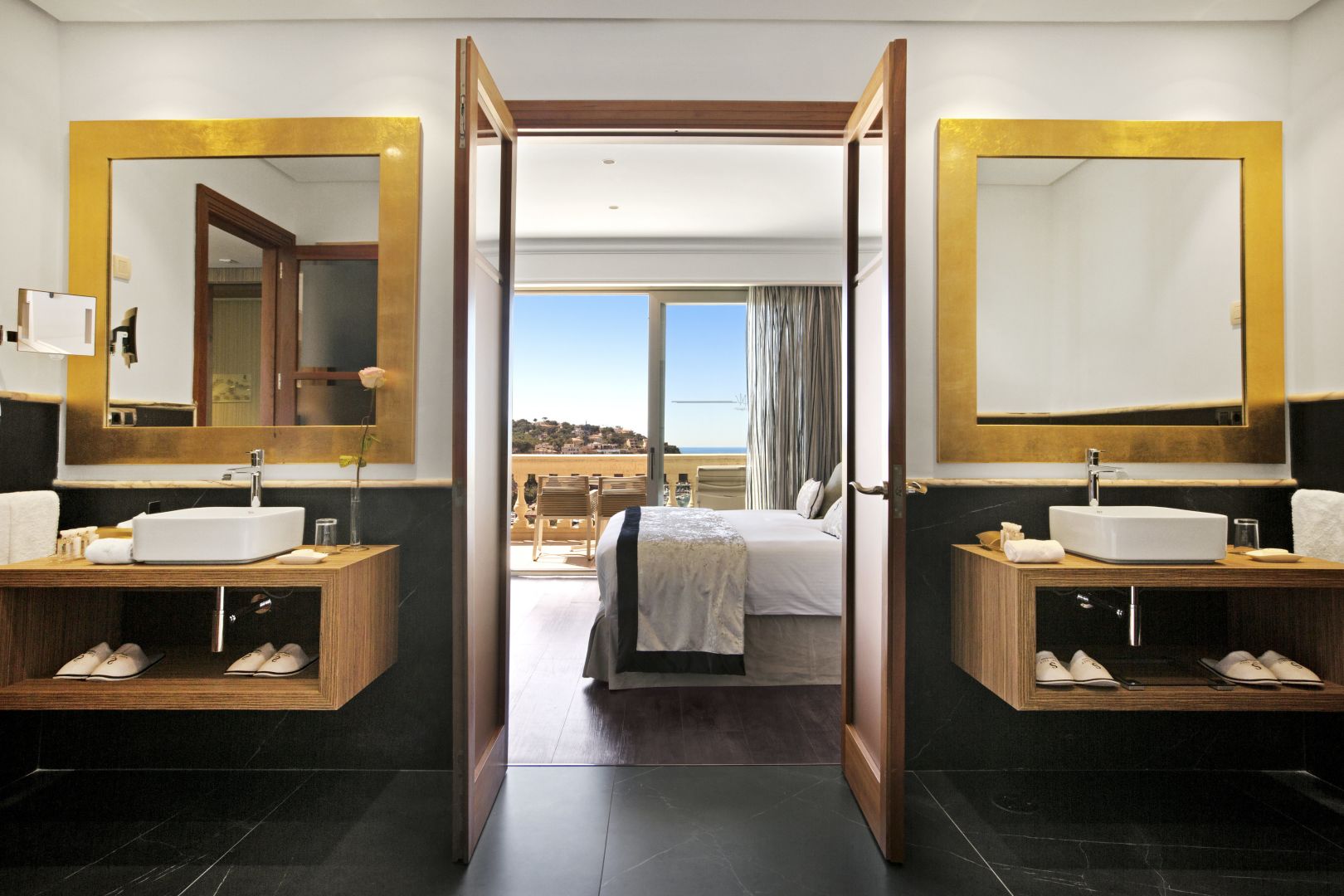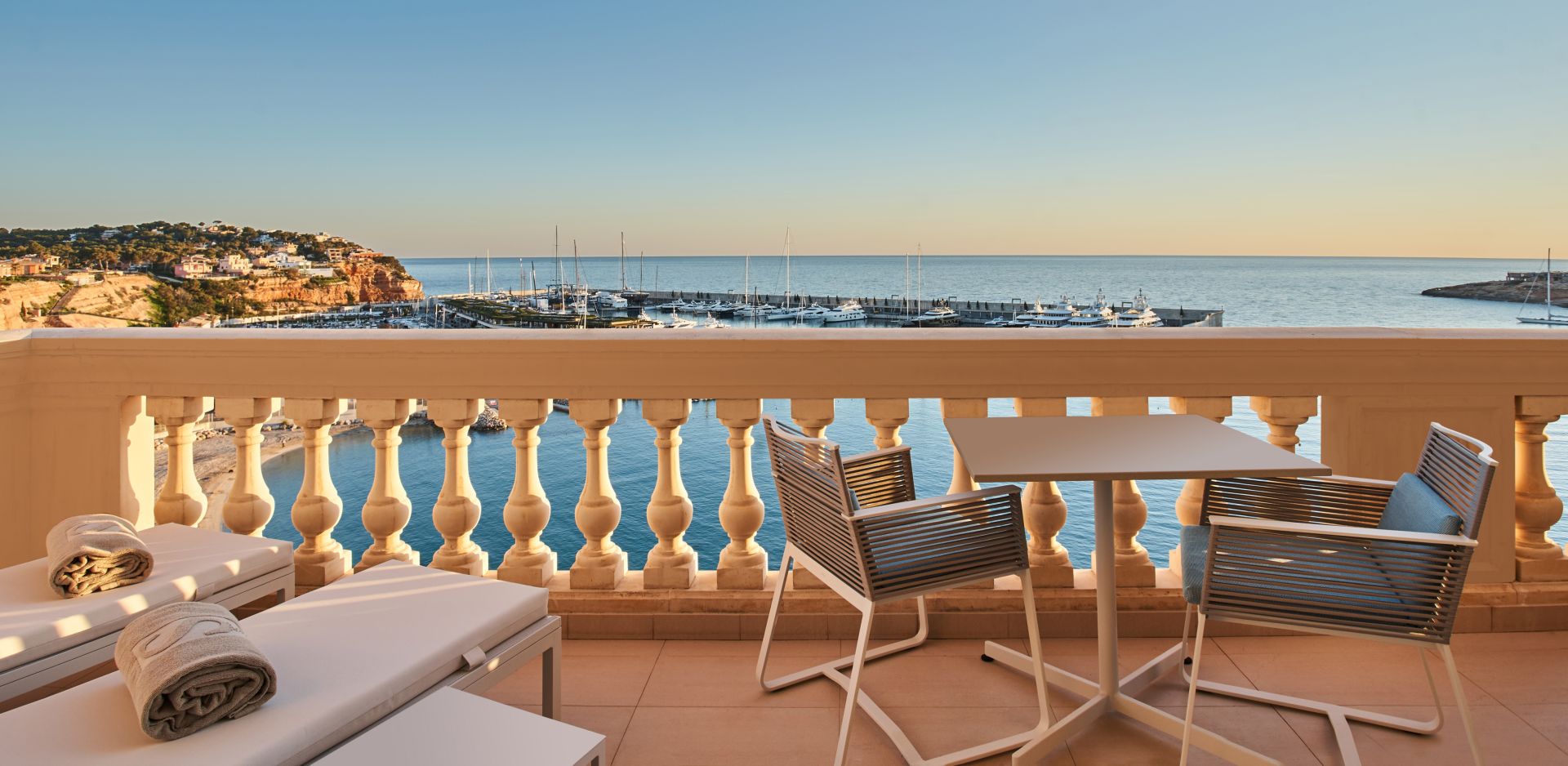 Superior Sea View Room: 50 м2. Состоит из спальни, просторной ванной комнаты, террасы с видом на бухту Port Adriano.