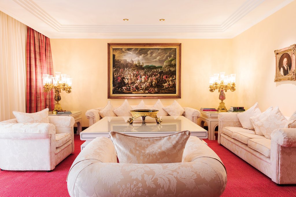 Senator Suite: 68-88 м2. Состоит из спальни, гостиной, гардеробной, ванной комнаты, балкона. Расположен на 1-4 этажах в отдельном крыле.