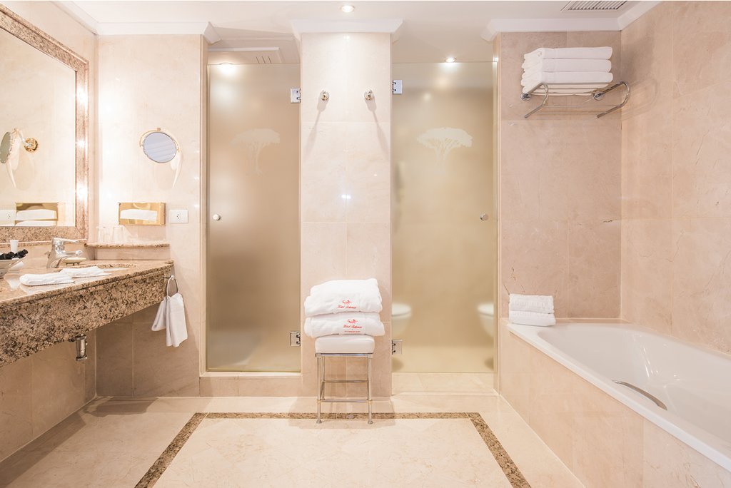 Ambassador Junior Suite: 50-60 м2. Состоит из спальни с кроватью king-size или двумя кроватями twin, гостиной зоны, просторной ванной комнаты с ванной, отдельным душем и гардеробной, балкона с видом на город и океан или на сад спа-центра. Расположен в отдельном крыле, на 1-4 этажах.