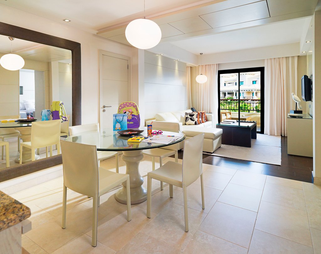 Redlevel for Families - 1 Bedroom Master Suite Resort View: 68 м2. Семейный номер с видом на курорт, состоит из спальни, просторной гостиной с кожаным диваном и столовой, ванной комнаты с ванной и "тропическим" душем, оборудованной террасы.